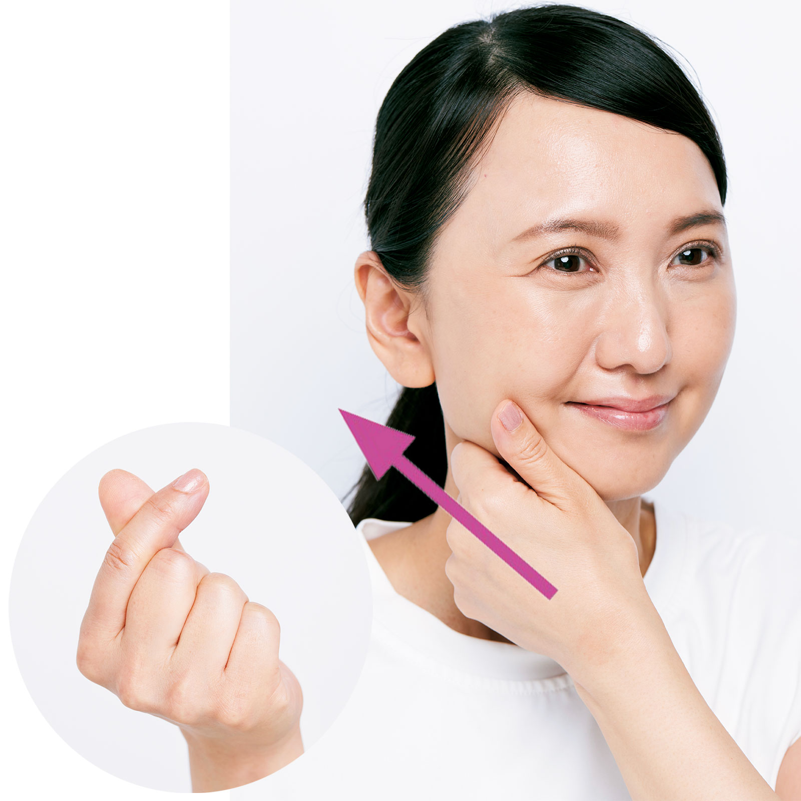 ②親指でカッサを作りあご下から耳まで引き上げます。