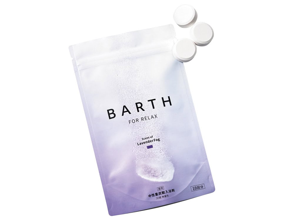 重炭酸イオン温浴効果により疲れを和らげ、香りでおやすみ前にリラックス。薬用BARTH中性重炭酸入浴剤RELAX LavenderFog [医薬部外品](30錠) ¥3,190/BARTH