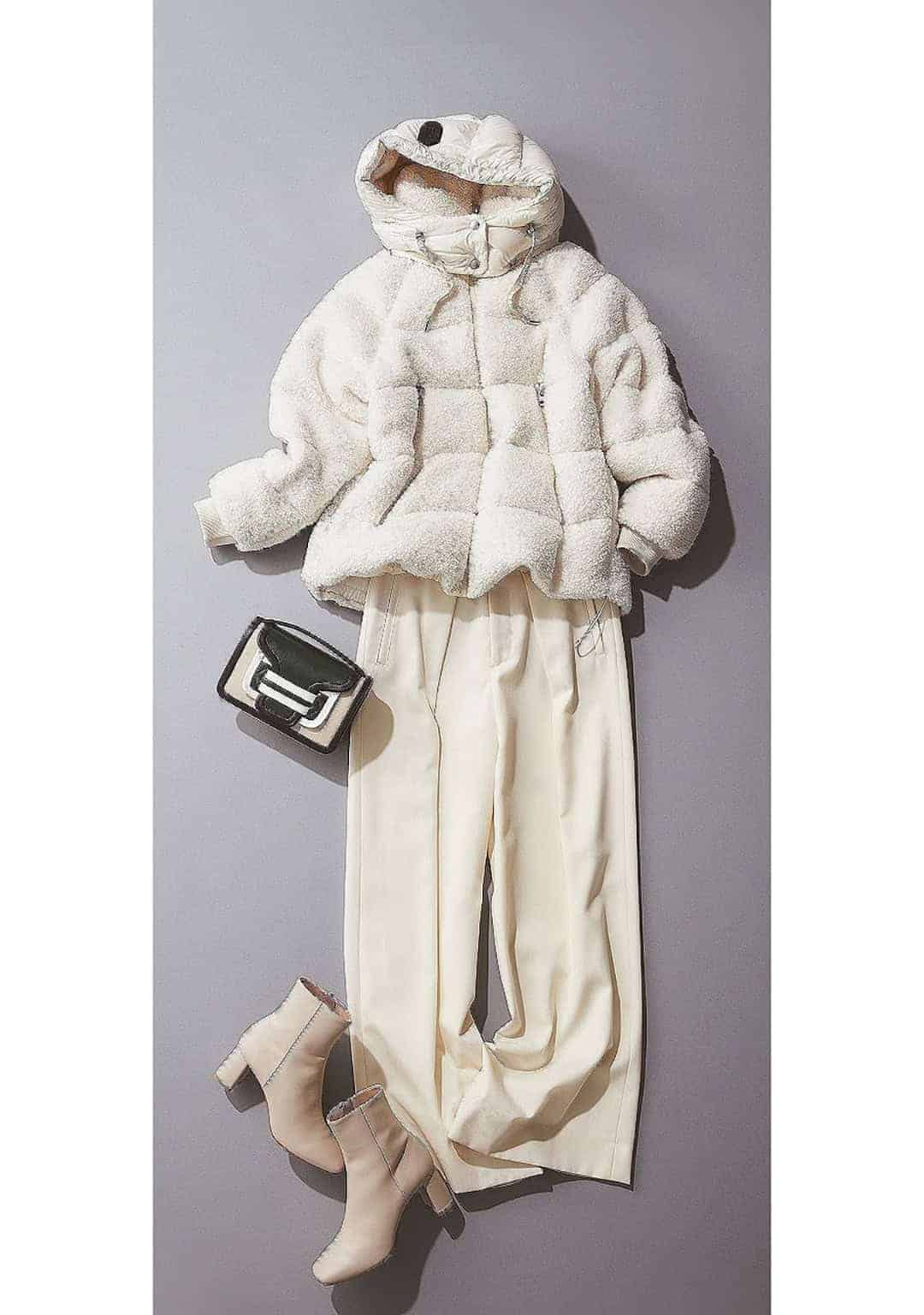 防寒の王道であるダウンコートも、白やボアを選べば、たちまち“ときめくアウター”に。おめかししたい気持ちのお出かけには、全身白で揃えて特別感を高めて。ショート丈ならもたつきもなく、スタイリッシュに仕上がります。