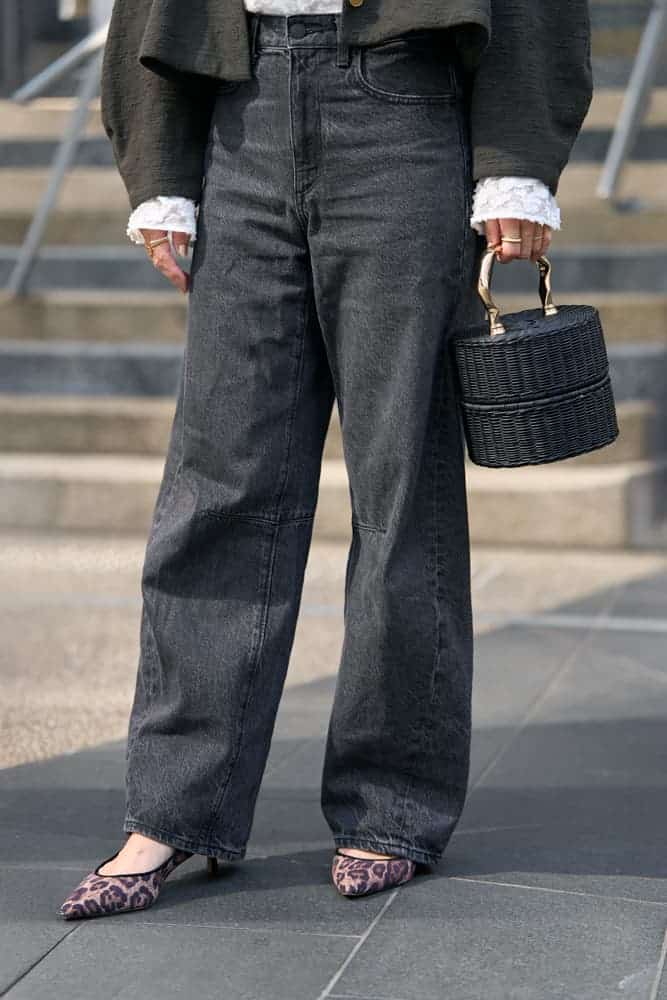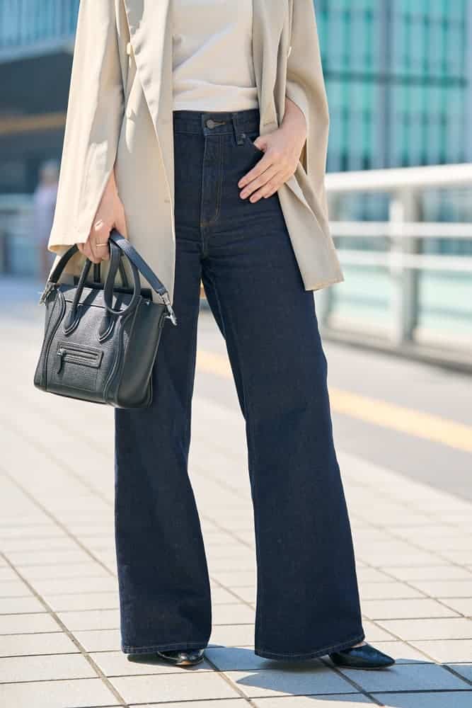 【バレルレッグジーンズ】で控えめなトレンド感を