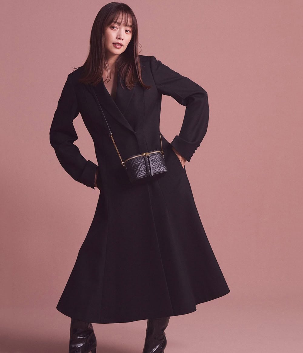 バッグ「FENDI Vanity」[H⒒×W16×D8㎝]¥280,500ロングコート¥715,000ブーツ¥305,800※予定価格(すべてフェンディ/フェンディ ジャパン)