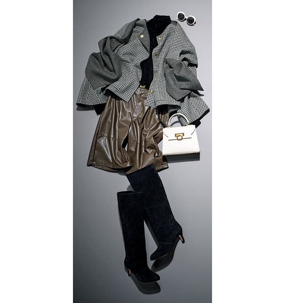 ▶40代、最高の“おめかし冬コーデ”は「ショート丈スカート×ロングブーツ」でモチベが上がる!