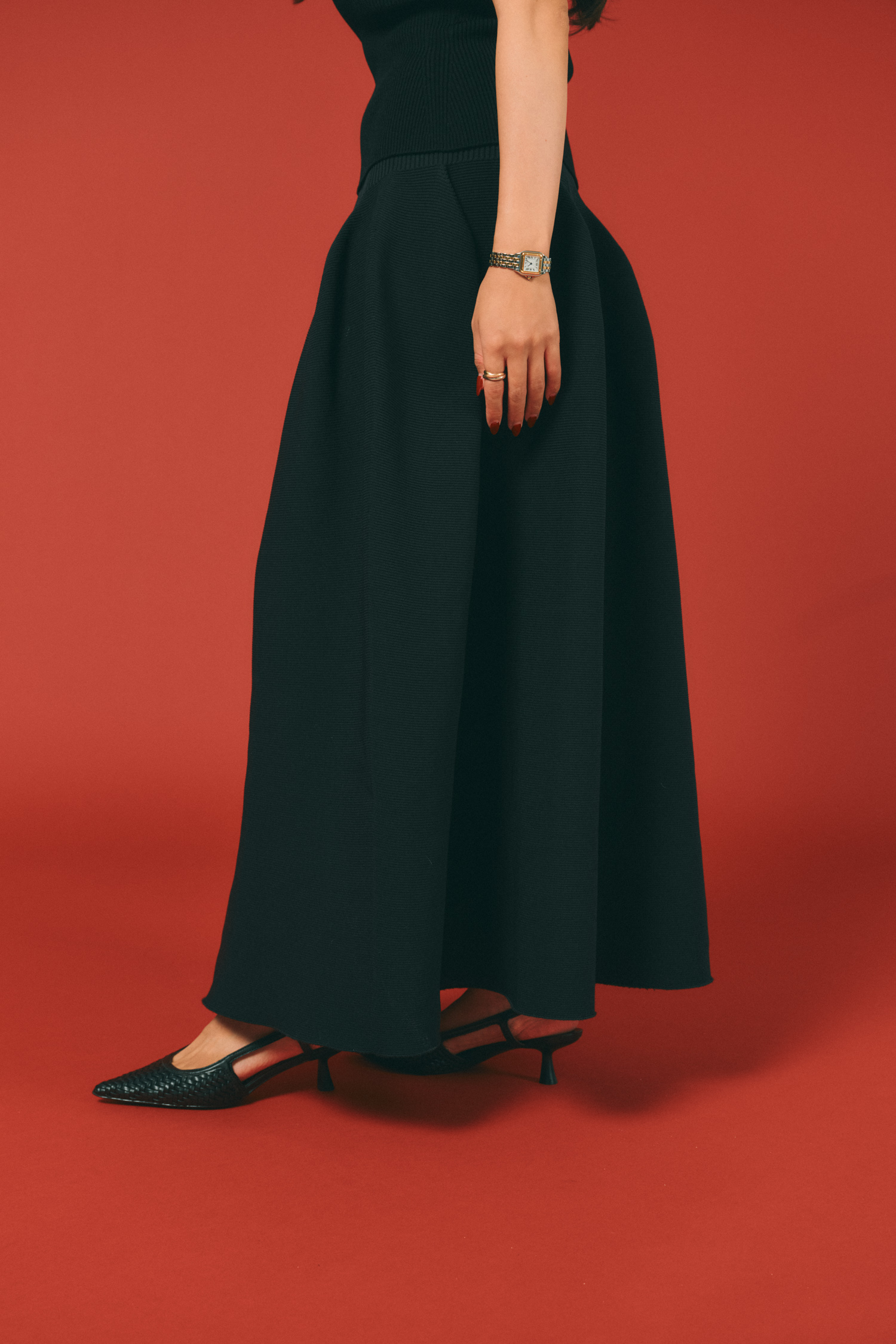 CFCLのスカートで作るオフィスで着映える黒コーデ
