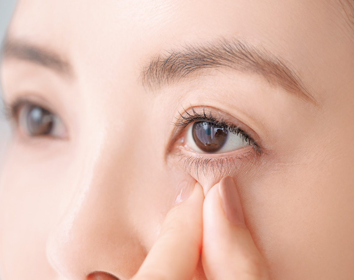 柔らかくてつまみやすく、且つ下まぶたの裏側がベロンと見えます。皮膚内部のコラーゲン繊維が緩いことが原因。