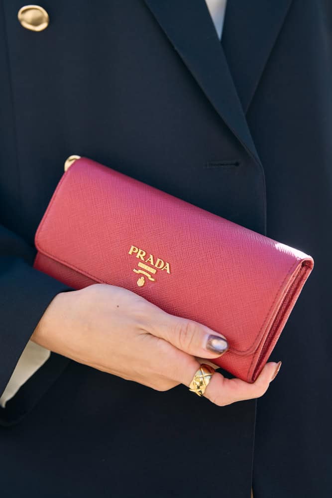 ローズピンク×ゴールドで華やぐ【PRADA】の長財布