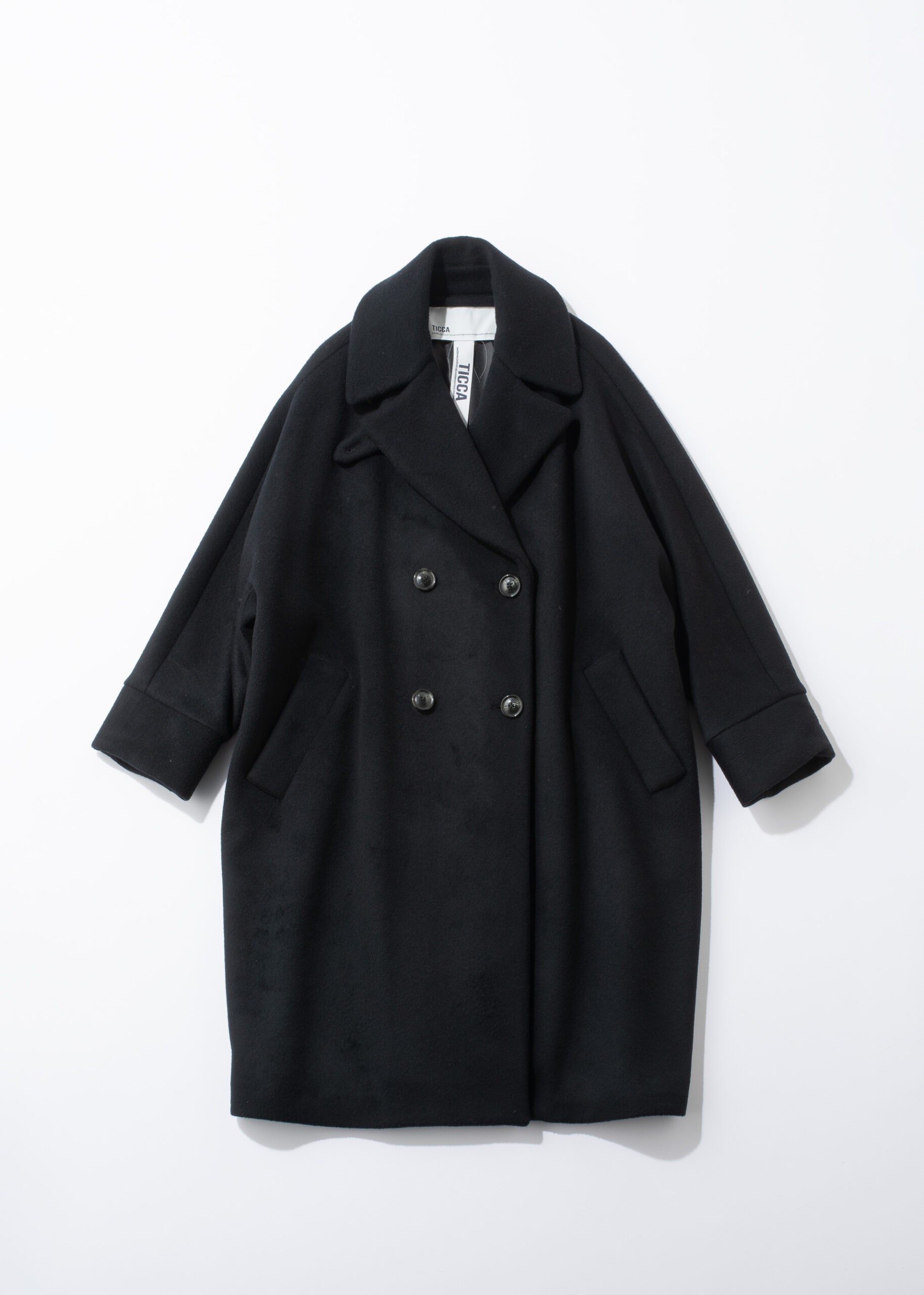 シンプルなデザインと裾にかけゆったりと広がるテントラインはボトムスを選ばずバランス良く使え、着る人を選びません。上質な毛並みとウール100%の保温効果に優れた暖かさも魅力的。テントコート¥69,300(ティッカ/ビームス公式オンラインショップ)