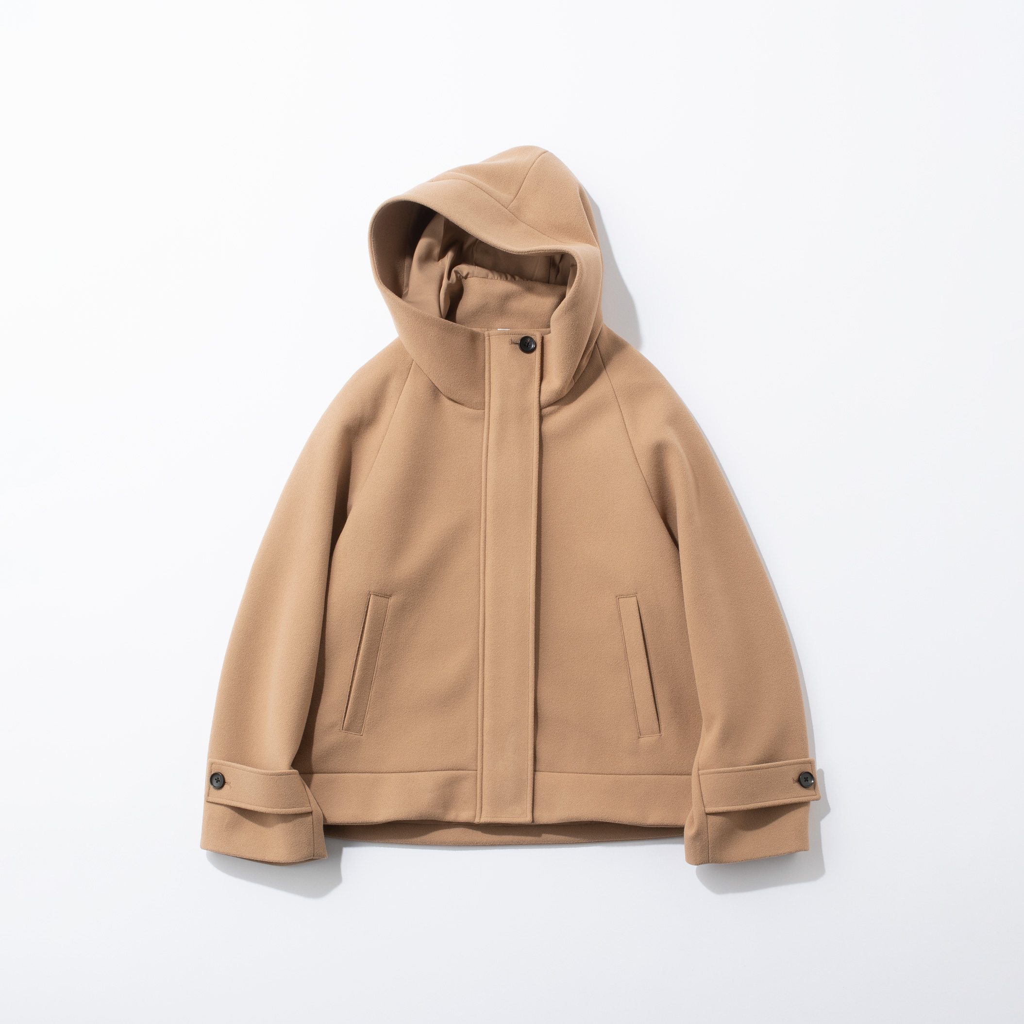 フーディ付きでパーカっぽいシルエットが可愛いショートコート