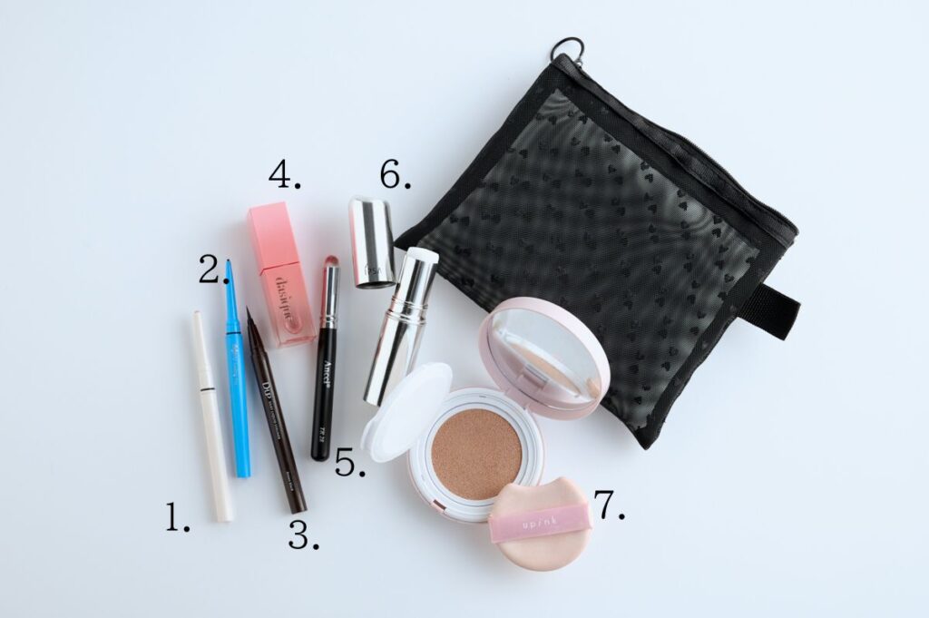 目元はメークが落ちやすいので「cipicipi ポイントコンシーラー 01ライトベージュ」「Dejavu ラスティンファイン 極細クリームペンシル ダークブラウン」「D-UP シルキーリキッドアイライナーWP ブラウンブラック」は必ず持ち歩きます。リップは「Dasique ジューシーデュイティント # 20 ベアーヌード」とともに「Ancci アンシブラシ TR28」はマストです。心配性なので結構持ち歩いているほうかもしれませんね(笑)。そのぶん、チークはリップで代用したりしますよ。