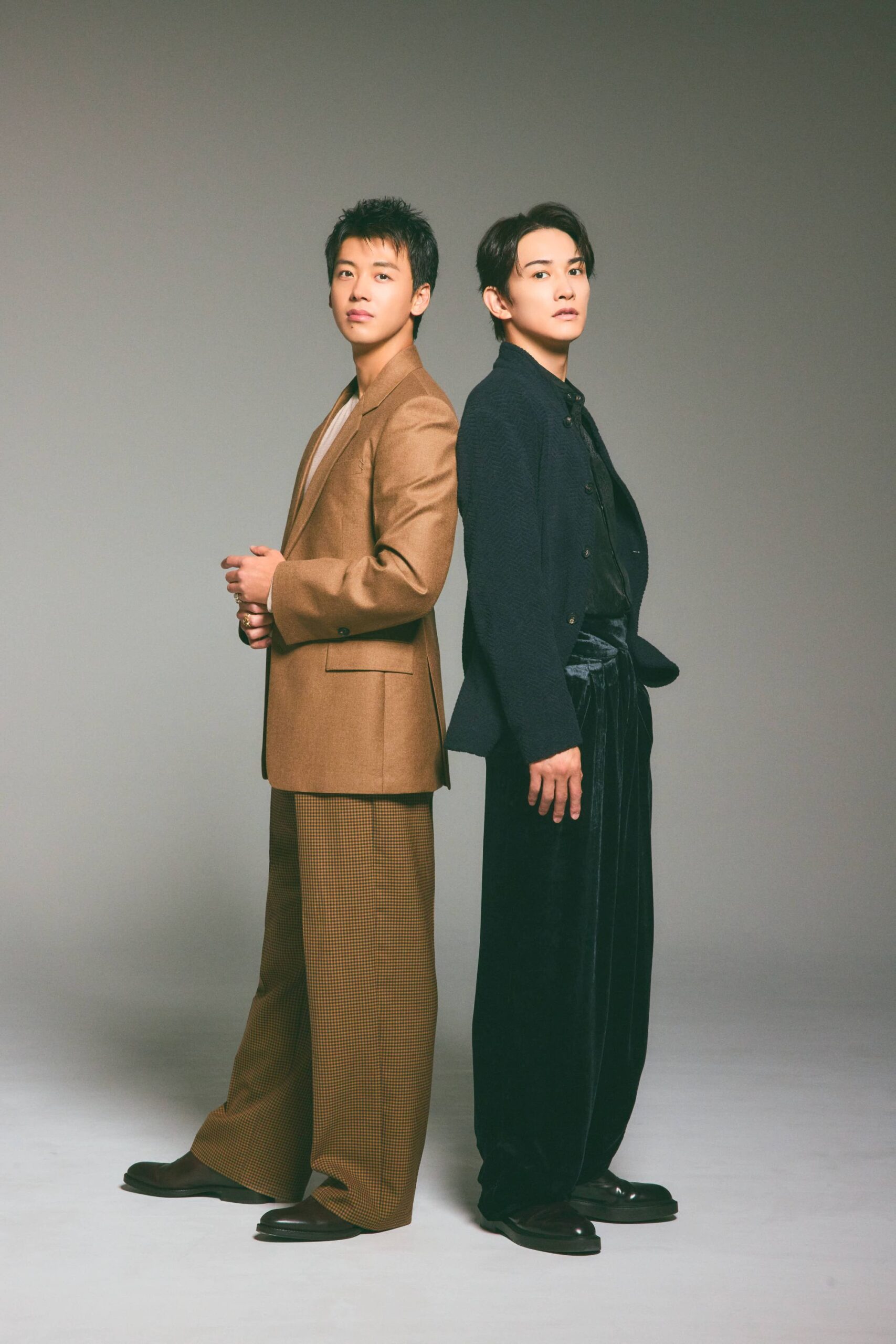 [竹内さん分]ジャケット¥319,000ニット¥132,000パンツ¥165,000シューズ¥198,000(すべてFerragamo/フェラガモ・ジャパン)[町田さん分]ジャケット¥206,800シャツ¥129,800パンツ¥217,800シューズ¥113,300(すべてエンポリオアルマーニ/ジョルジオ アルマーニ ジャパン)
