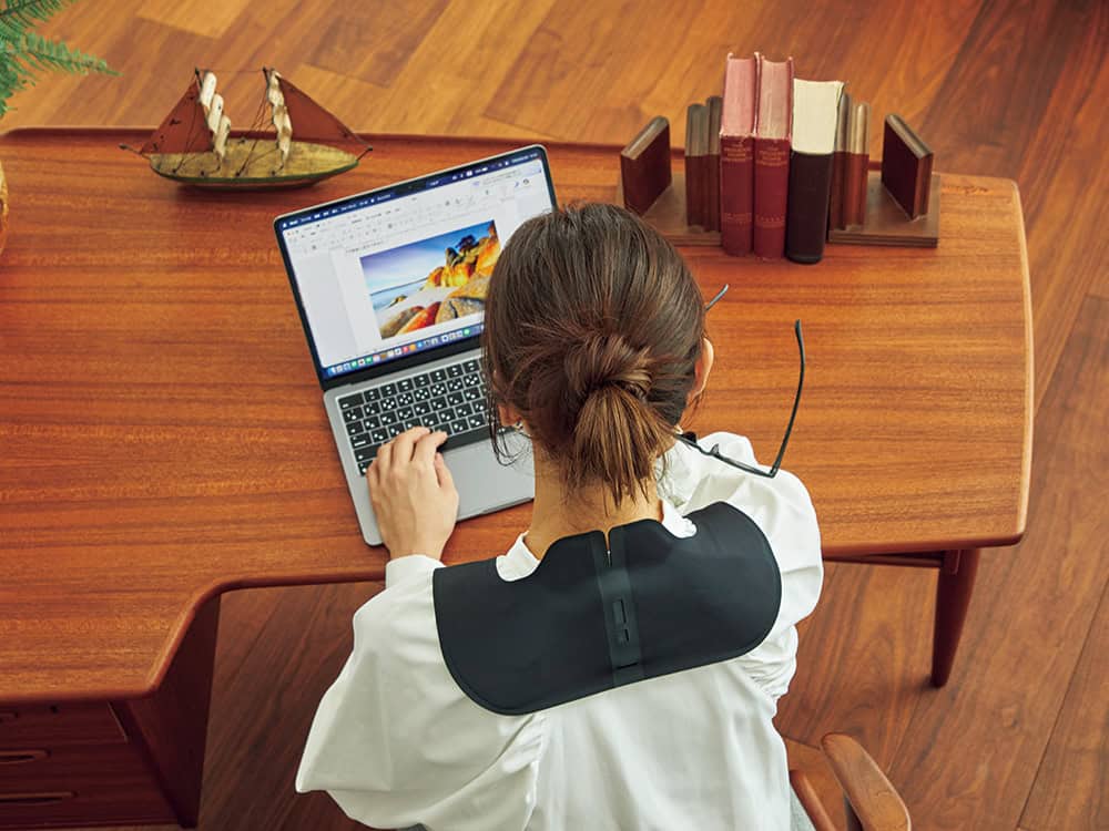 羽織るだけで血流促進。刺激なしで続けられる〝肩ケア革命〟しっかり肩にフィットするから家事の間にも◎ 高周波が血管に働きかけて血流を促進しコリをほぐす。ピリピリ感もなくつけていることを忘れるほど快適。在宅中の〝ながらケア〟にもぴったり。