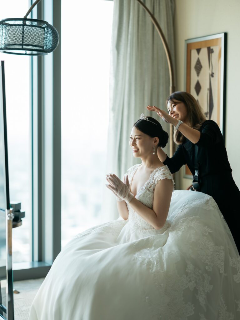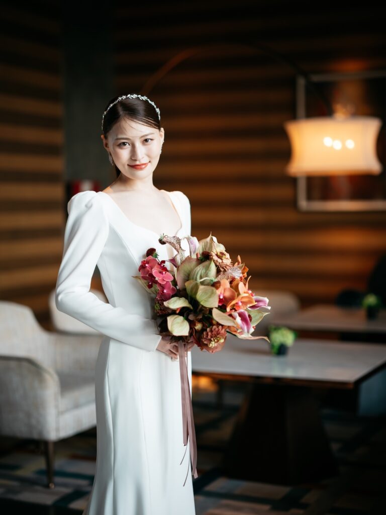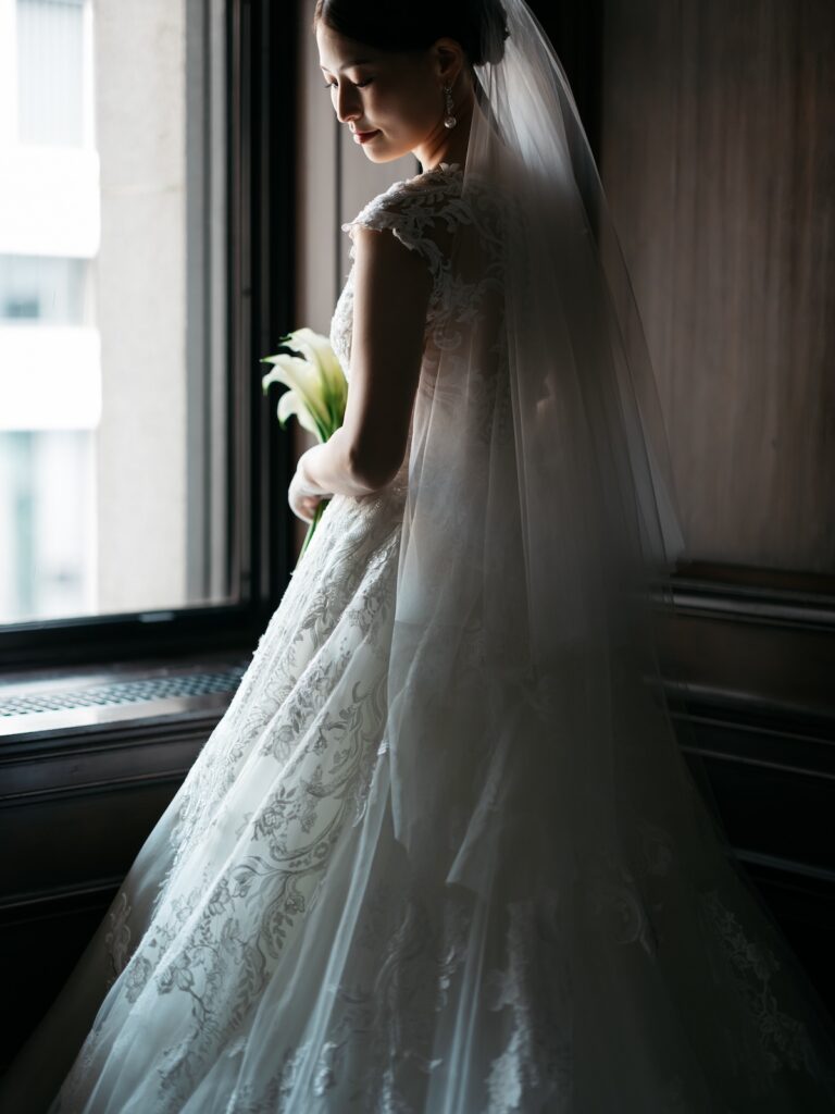 「とにかくいろんなドレスを探していて、インスタでも毎日のようにチェックしていました。試着も意外とたくさん行きましたが、頭の片隅にはずっとプロノビアスのこのドレスが残っていたんです。ようやく予約が取れて試着した瞬間、“やっぱりこれだ”と確信しました。即決でしたね」(由季さん)