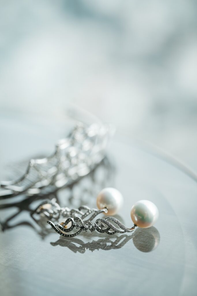 1着目のティアラは、本物のダイヤモンドがあしらわれたティアラをセレクト。そしてピアスは、母が「いつか結婚式で着けられるように」とオーダーメイドしてくれた特別なもの。
