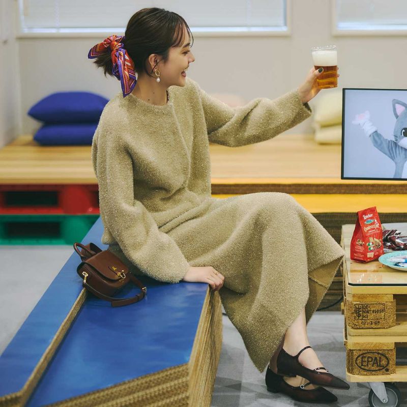 新しい年の始まりは、ラメニットのセットアップで乾杯! 控えめなきらめきが顔まわりをトーンアップし、特別感を添えてくれます。 優しい光沢としなやかな素材が、着心地のよさと品の良さを両立。 スカーフやメリージェーンで遊び心を加えて、気分の上がる新年会コーデに仕上げて。