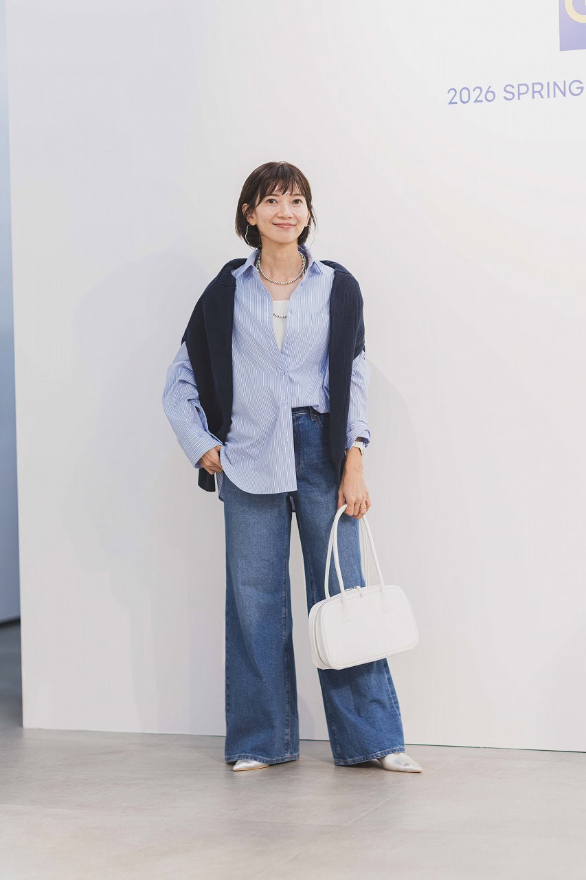「今季のGU(ジーユー)は、シャツのラインナップもとっても豊富! 中でも爽やかにきまるストライプシャツは一枚あると頼れる存在です。冬はニットとレイヤードして奥行きのあるスタイルに、春先は一枚でさらっと羽織るだけで、こなれた印象になります。新作フレアデニムに、オーバーサイズのシャツとヒール、真っ白なバッグを合わせて綺麗めカジュアルスタイルにしてみました。」