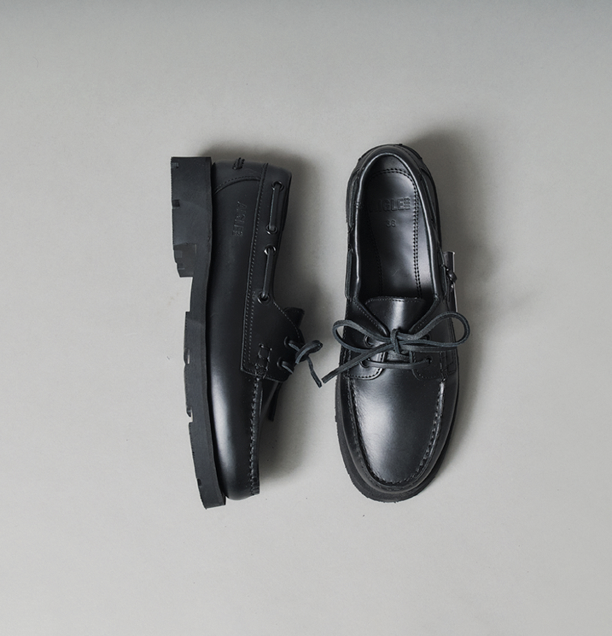 ローファーよりもメンズっぽいデッキシューズが今の気分! シューレースまでブラックで、ちょっぴりモードな雰囲気がお気に入り。タイトスカートなどと合わせて、甘辛なギャップを楽しみたいです。