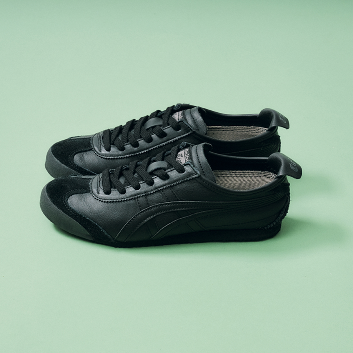 大好きな真っ黒スニーカー。最近仲間入りした「メキシコ」はレザーの上品さがお気に入り。土踏まずにクッションがフィットして、ふっかふか。足と一体化するとはこのこと…?と思うような履き心地です。