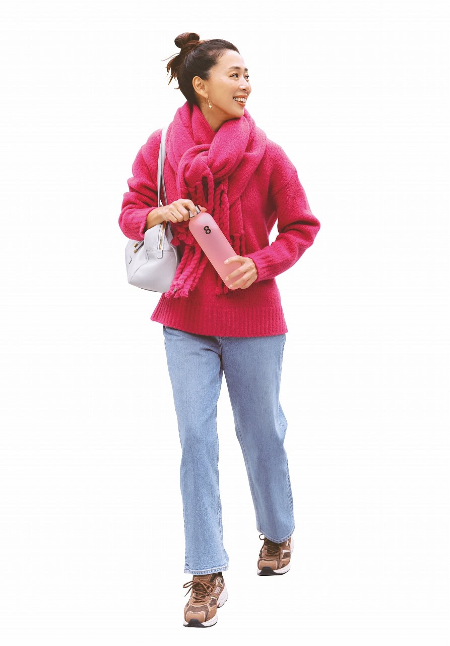 トップス¥14,300(ローブ ブラン)デニムパンツ¥31,900(ヤヌーク╱カイタックインターナショナル)バッグ¥26,400(ロウェル シングス╱アバハウスインターナショナル オンラインストア)ピアス¥9,130 ネックレス¥41,800 リング¥11,000(すべてエムシー・スタジオ╱ZUTTOHOLIC)