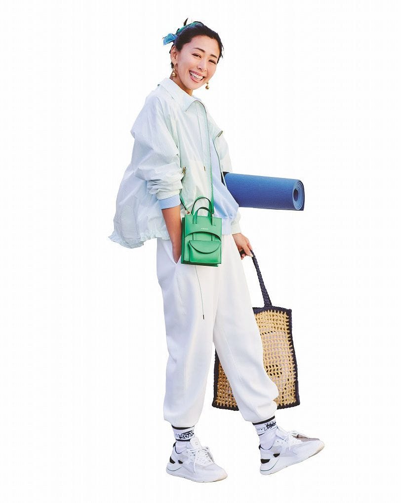 スニーカー[ALLACCIATO]¥75,900(ホーガン/トッズ・ジャパン)ジャケット¥29,700パンツ¥22,000(ともにELENDEEK)タンクトップ¥11,000(ハイク/ボウルズ)バッグ¥31,900(ヴィオラドーロ/ル タロン 有楽町マルイ店)ピアス¥8,800(アビステ)リング¥14,300(ワンエーアールバイウノアエレ/ウノアエレ ジャパン)