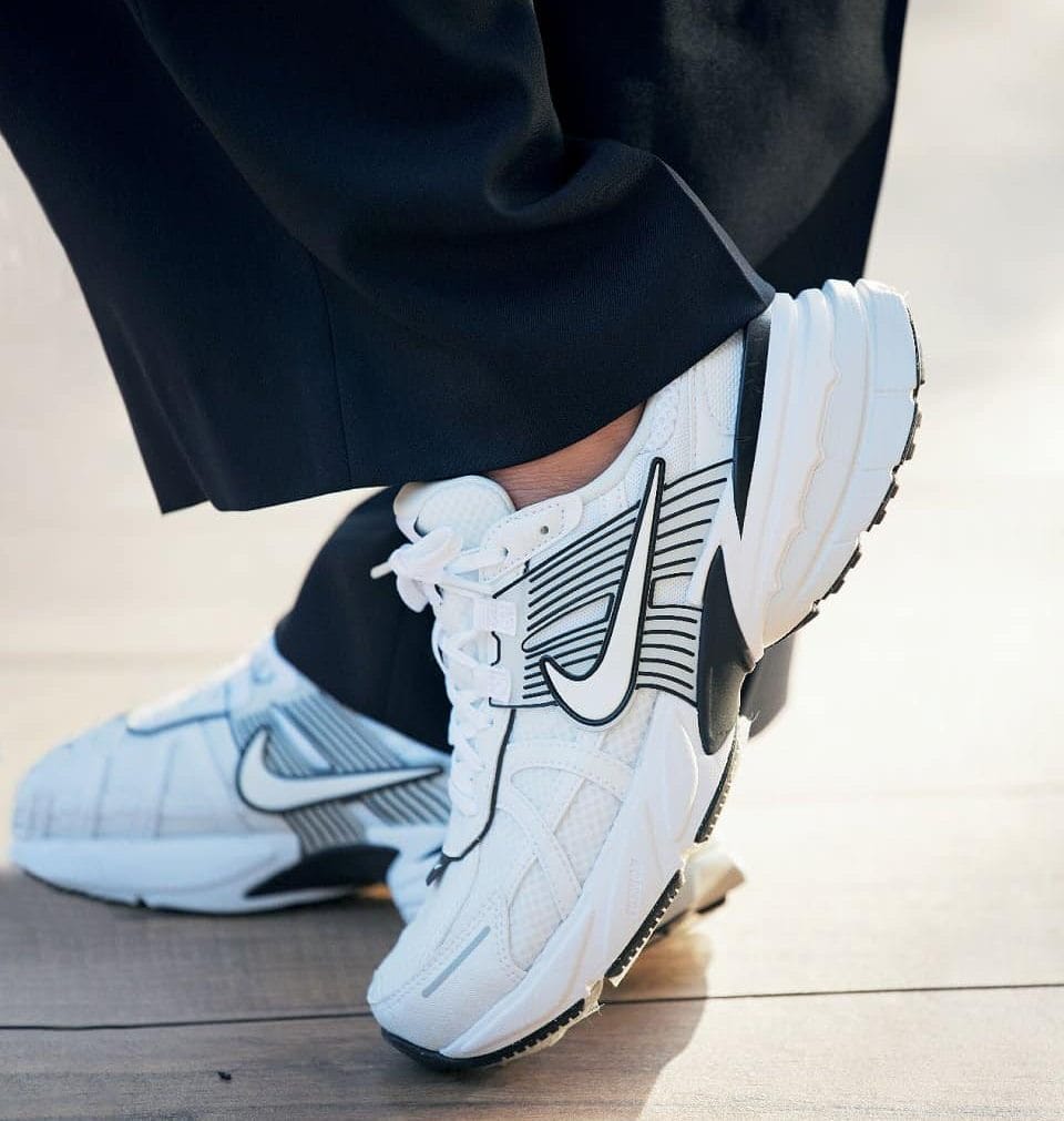 真っ白に黒ラインのナイキは、ミニマルなのに今っぽい存在感。ネイビーのワントーンに合わせると一気に洗練度がアップします。白の潔さが重たさを取り払い、オフィスでも浮かないスタイリッシュさが40代にぴったりです。