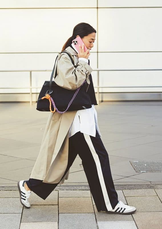 メンズライクなゆるシルエットを、ローテクのサンバOGで端正に引き締め。クラシックな配色だから、カジュアルでもどこか上品顔に仕上がります。40代の今っぽさが、足元だけでしっかり手に入る万能スニーカーです。