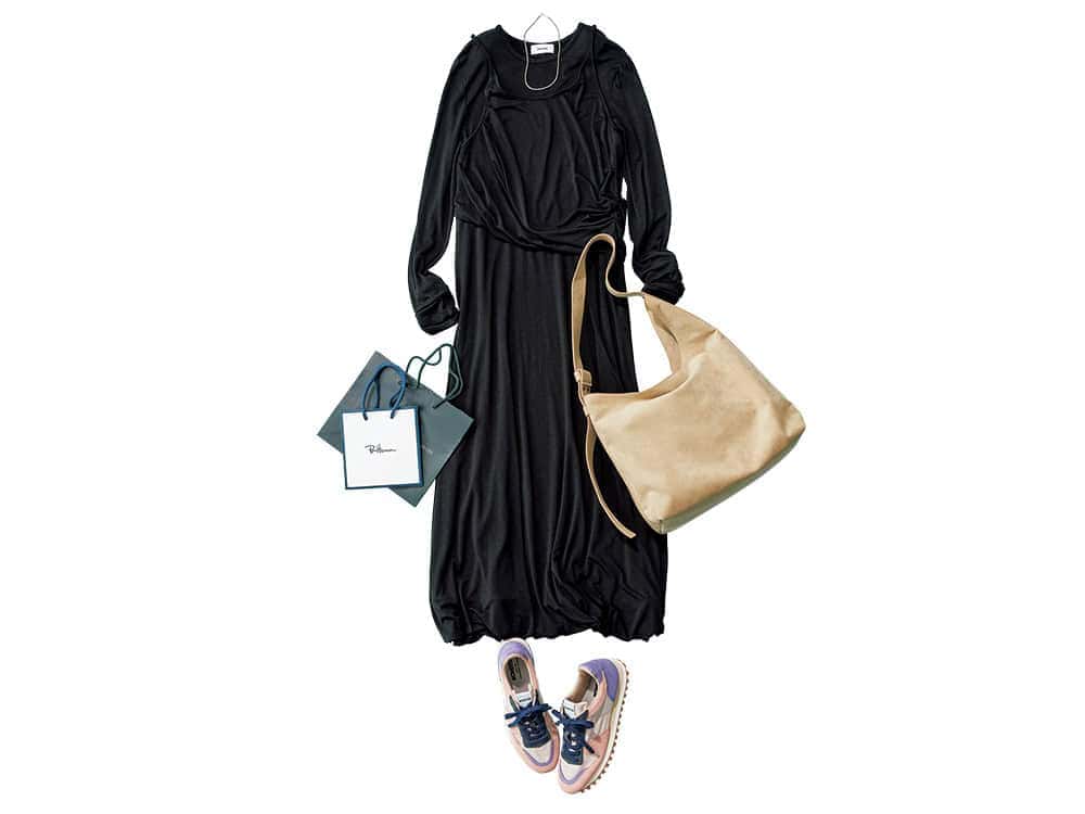 スニーカー¥27,500(ノヴェスタ/ノヴェスタ ジャパン)ワンピース¥24,200MIESROHEMIESROHE ルミネ新宿1店)バッグ¥39,600(ドゥーブル/ジュンカスタマーセンター)ネックレス¥13,200vihod/ロードス)
