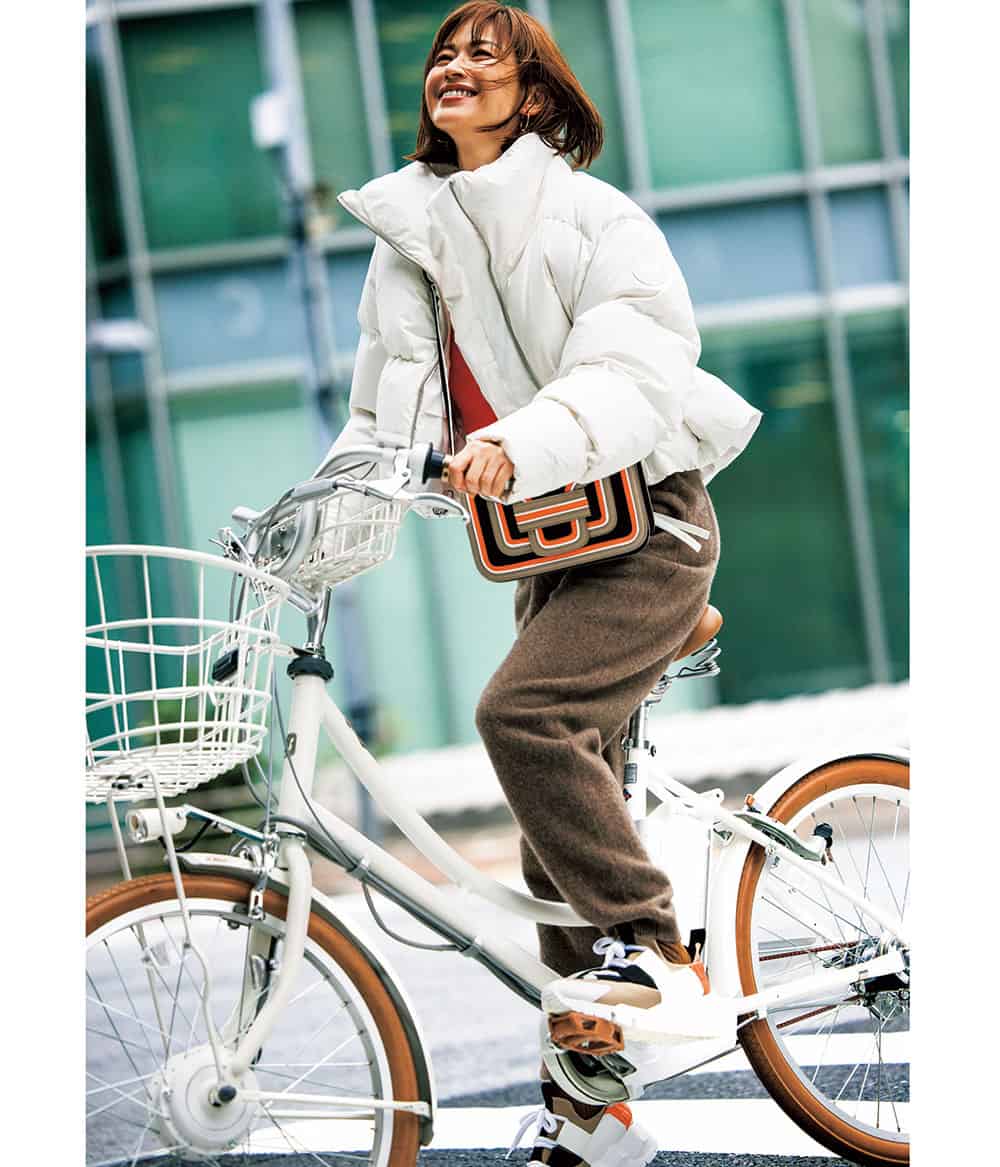 スニーカー¥39,600〈デイト〉バッグ¥39,050〈ヴィアメイルバッグ〉(ともにティースクエア プレスルーム)ダウンジャケット¥75,900(ケープホーン/ティースクエア プレスルーム)ニット¥22,000(エイチ ビューティー&ユース)キャミソール¥27,500(ソブ/フィルム)パンツ¥35,200(プロタゴニスタ/アマン)サングラス¥25,300(ロンハーマン)ソックス¥5,500(オートリー/トヨダトレーディング プレスルーム)ピアス¥24,200ネックレス¥33,000(ともにローラ ロンバルディ/八木通商)