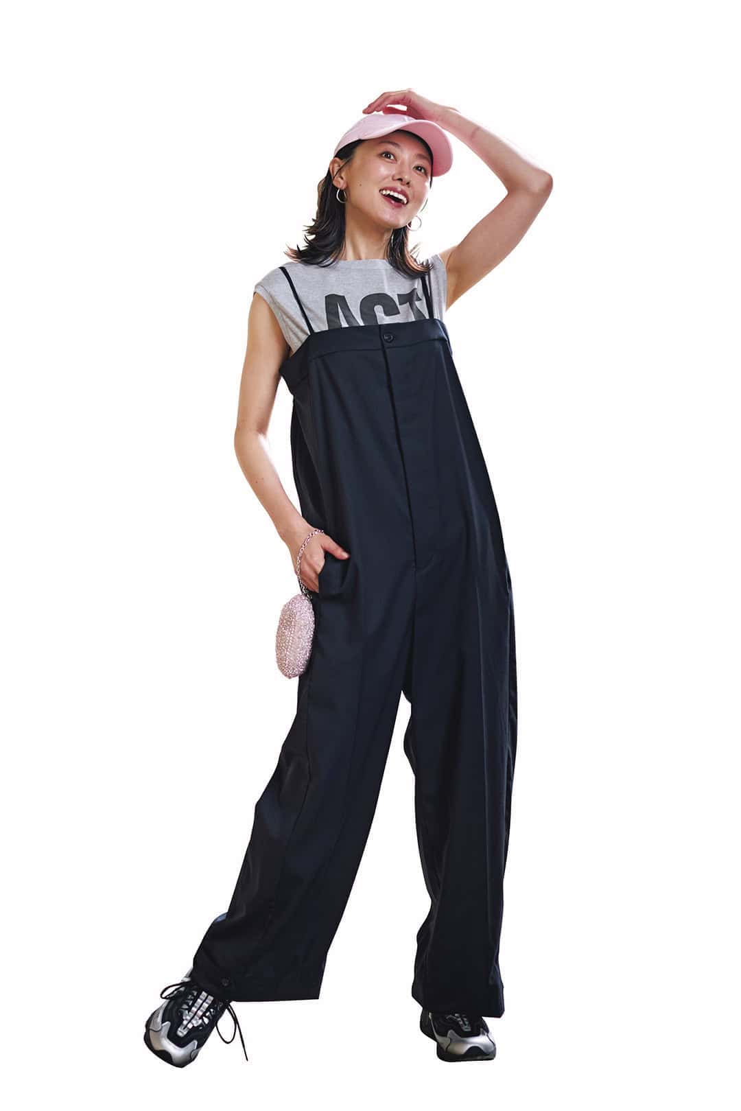 スニーカー[ニューバランス M1000D]¥19,800(ニューバランス/ニューバランスジャパンお客様相談室)シャツ¥27,500〈エッフェ ビームス〉パンツ¥29,700〈エーケー ワン〉(ともにビームス公式オンラインショップ)キャップ¥4,620(ニューエラ)バッグ¥28,600(ダイアナ/ダイアナ 銀座本店)メガネ¥39,600(ワンスリー コンバウンド フレーム/デュアル)ブレスレット¥17,600リング¥14,300(ともにワンエーアールバイウノアエレ/ウノアエレ ジャパン)