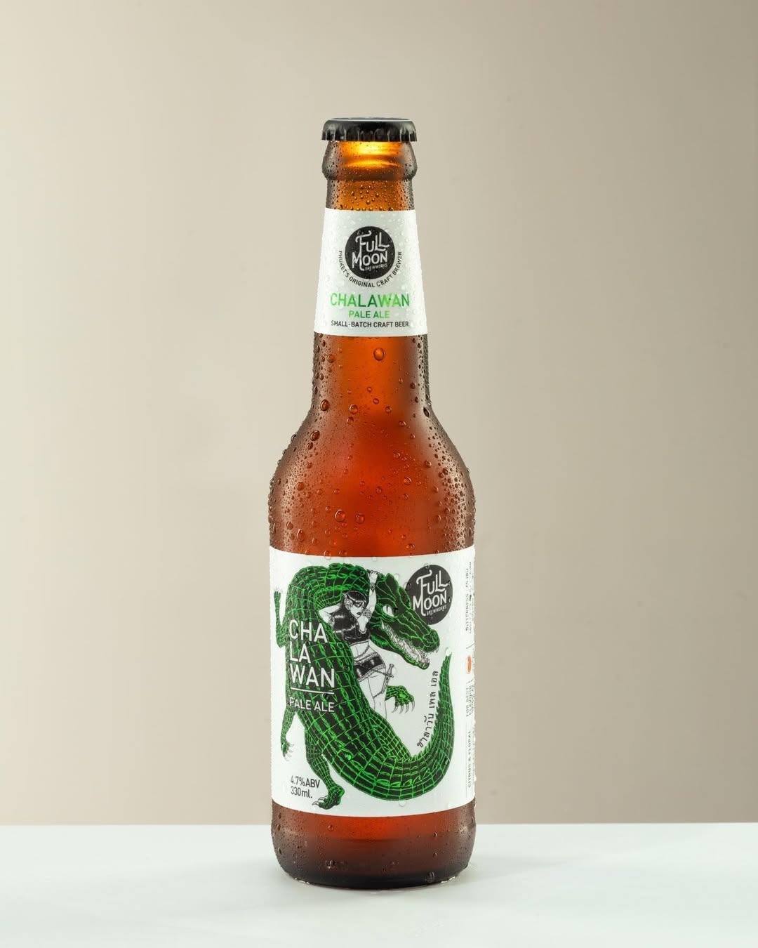 タイの伝説に登場する“ワニ王チャラワン”をモチーフにしたこのビールは、ラベルに描かれたワニのデザインが愛らしく、ボトルを手に取るだけで旅の物語が始まるような雰囲気です。フルーティーな香りと程よい苦味が青パパイヤサラダや海老のスパイシーサラダなどの酸味や辛味をやさしく包み込み、お料理とマッチ。