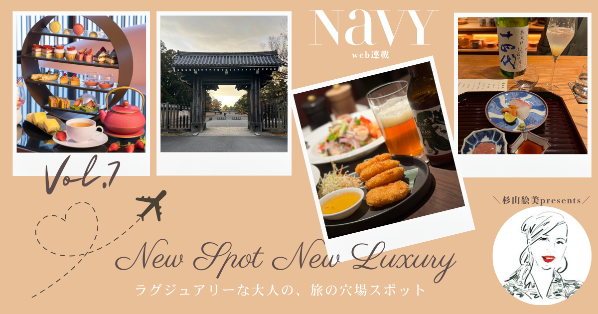 料理家、ライフスタイルプロデューサーとして活躍する杉山絵美さん。国内外を飛び回り、その行先は王道のラグジュアリーから想定外な穴場まで…枠にとらわれず好奇心旺盛に動くアクティブ派。プライベートでは、夫婦で東京以外にも拠点を持ち、カントリーライフも時々楽しんでいます。そんな杉山さんが目をつけた旅情報を紹介する連載【NEW SPOT NEW LUXURY】。第7回は、京都のお料理とドリンクの“マリアージュ”をご紹介します!