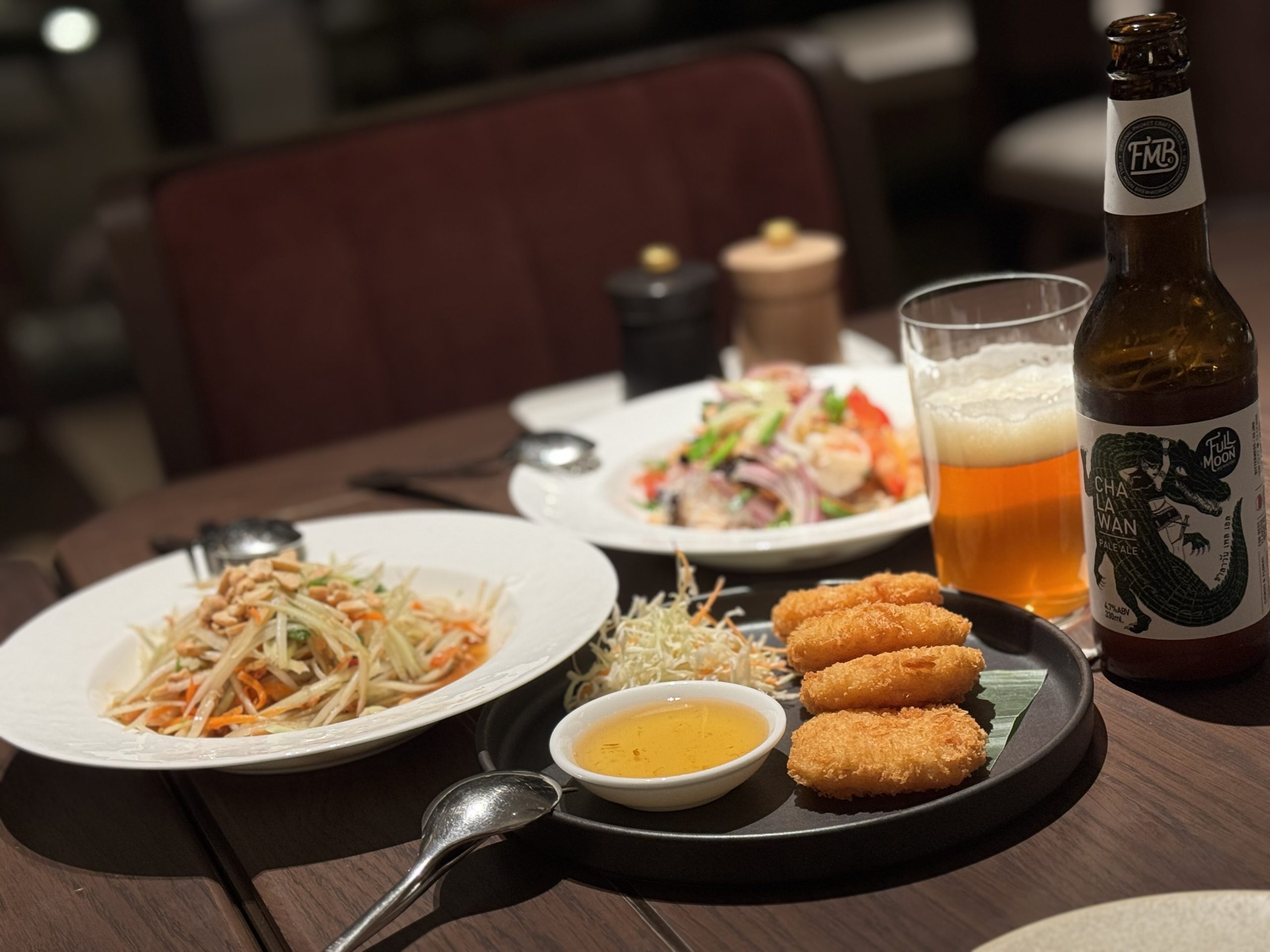 デュシタニ京都のレストランでは、洗練されたタイ料理とクラフトビールの新しいマリアージュが体験できます。伝統的なレシピをモダンに昇華した料理は、香草やスパイスが織りなす複雑な香りと繊細な味わいが特徴です。そこに合わせたいのが、プーケット発のクラフトビール「CHALAWAN Pale Ale(チャラワン・ペールエール)」です。