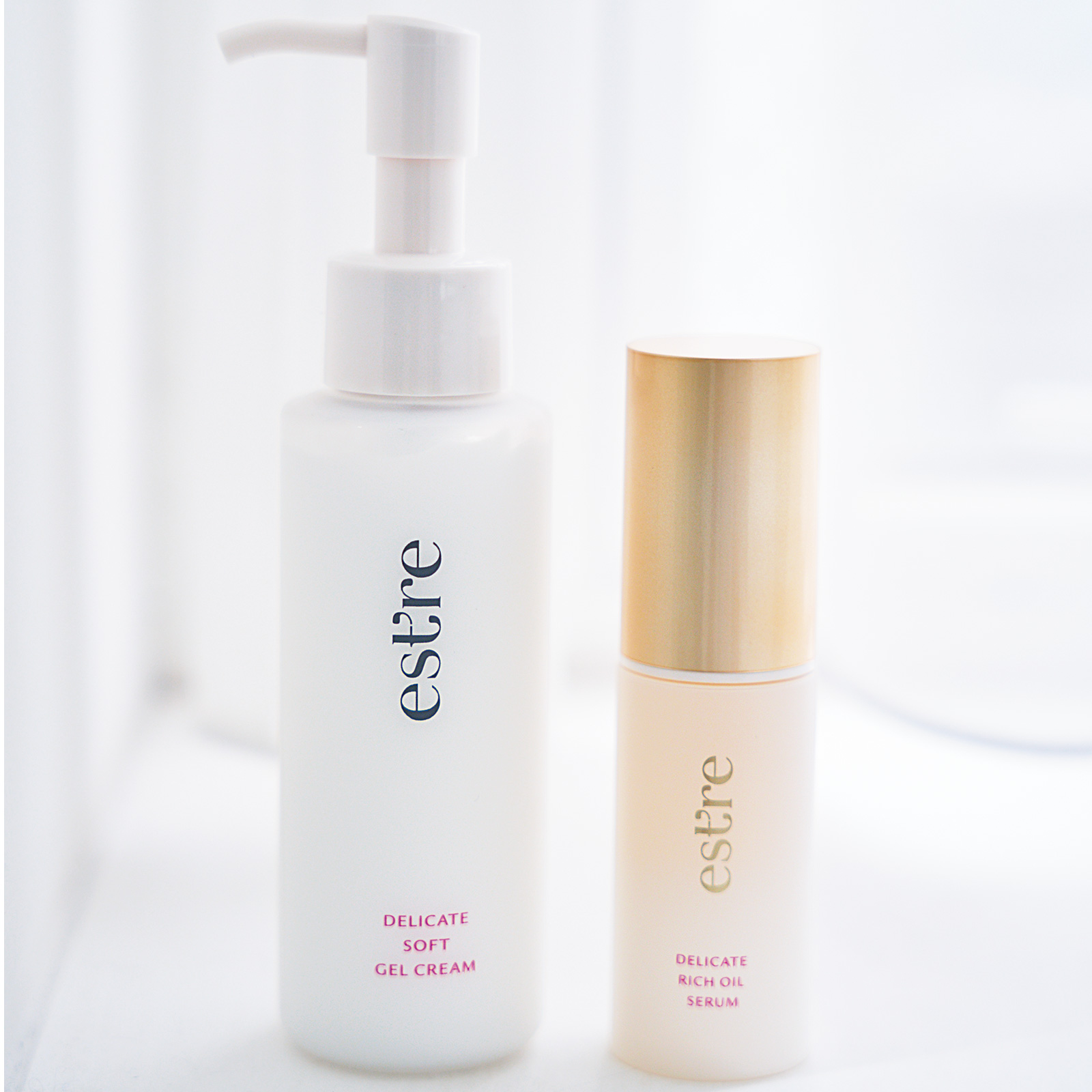 使い続けて◎。左から:エストール デリケート ソフトジェルクリーム100g¥3,520、デリケートリッチオイルセラム15ml¥8,800(ともにアドバンスト・メディカル・ケア)