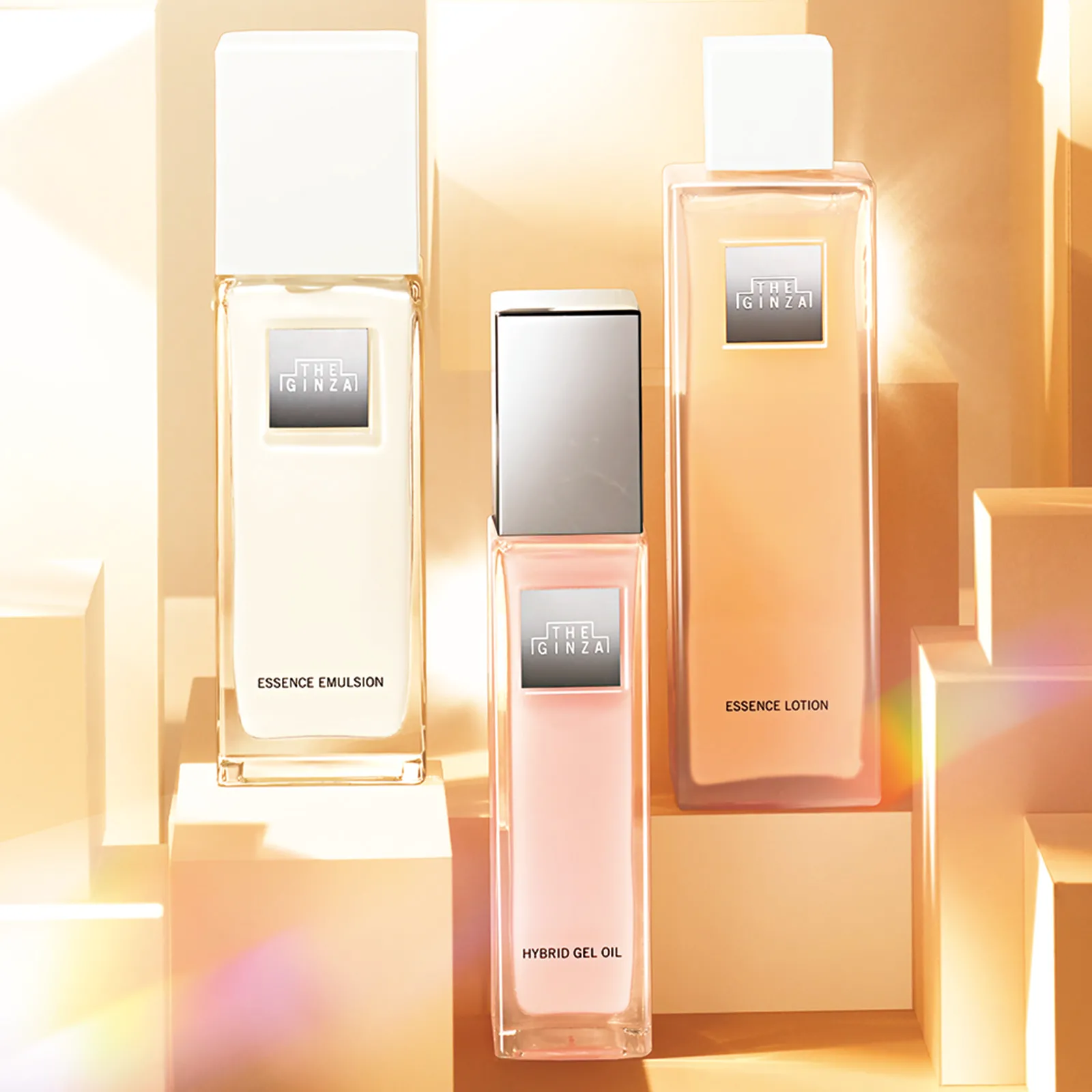 サイエンスとラグジュアリーが共存した洗練ブランドのスキンケアラインに多くの審査員が驚嘆、見事1位の座に。左から、エッセンスエマルジョン n 150ml ¥24,200ハイブリッドジェルオイル n 100ml ¥29,700エッセンスローション n 200ml ¥22,000(すべてザ・ギンザ)