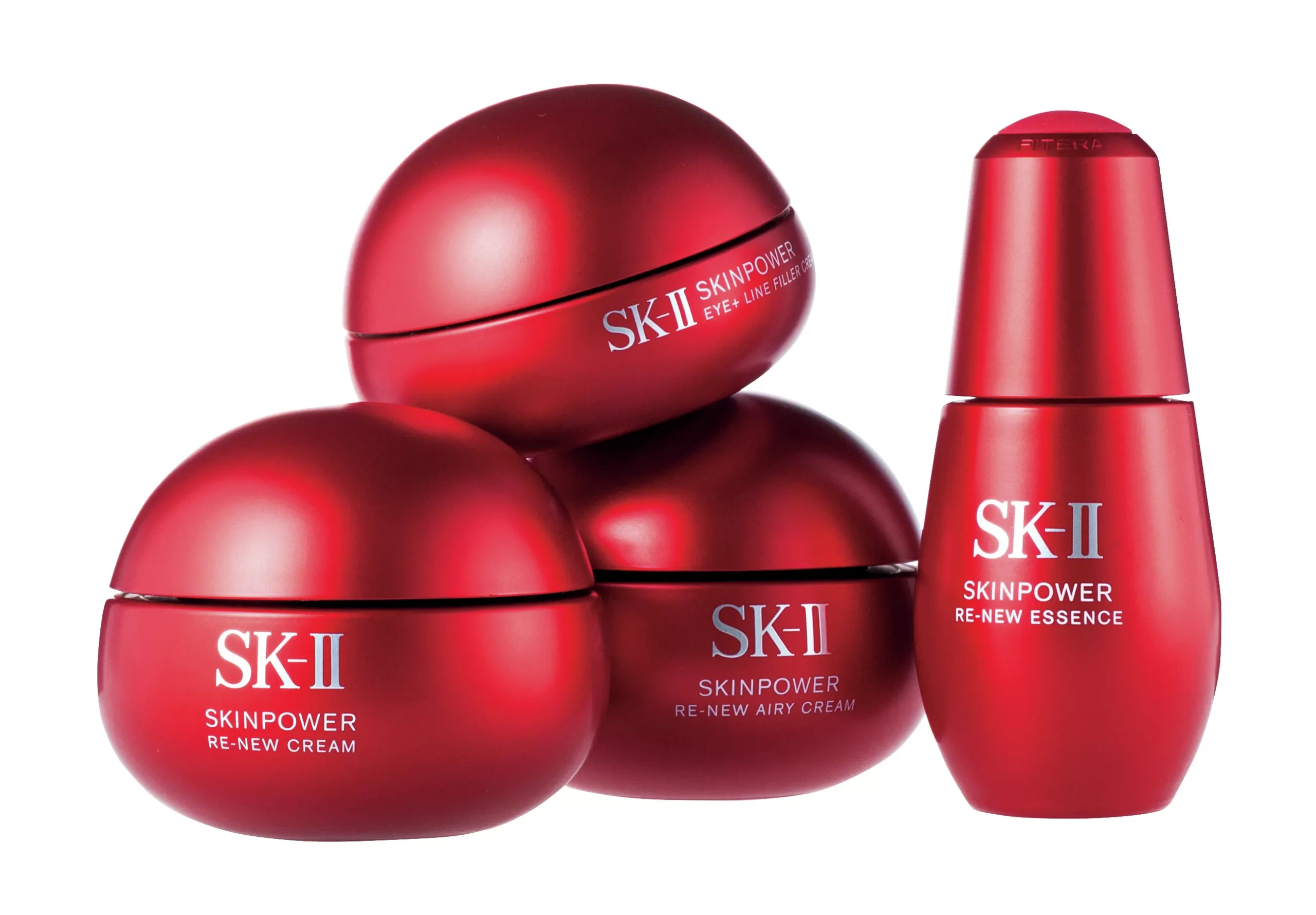 「翌日のハリ感とキメの整い方に感嘆。土台から潤いで満たされ、メーク映えする肌に/ラインでの全顔ケアがパーツごとの緩みを解消。(右から)スキンパワー リニュー エッセンス 30㎖¥18,150同 リニュー エアリークリーム 50g ¥18,700同 アイ プラス ライン フィラー クリーム 15g¥15,400同 リニュー クリーム 50g ¥18,700〈すべて編集部調べ〉(すべてSK-II)