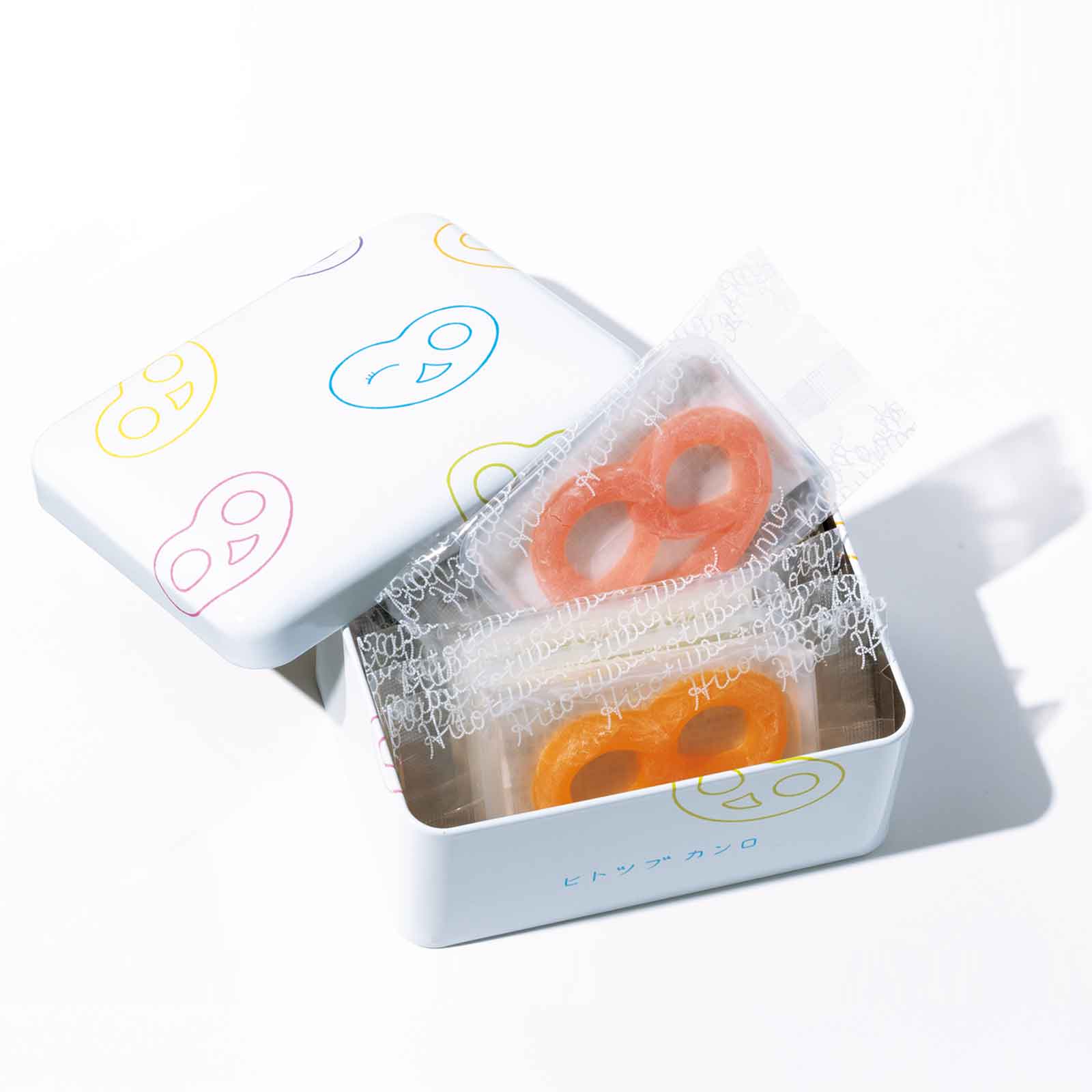 外側はパリパリ、内側はしっとり!グミッツェル缶 6個セット ¥1,600(カンロ)※ヒトツブカンロ原宿店限定。購入時にはデジタル整理券が必要