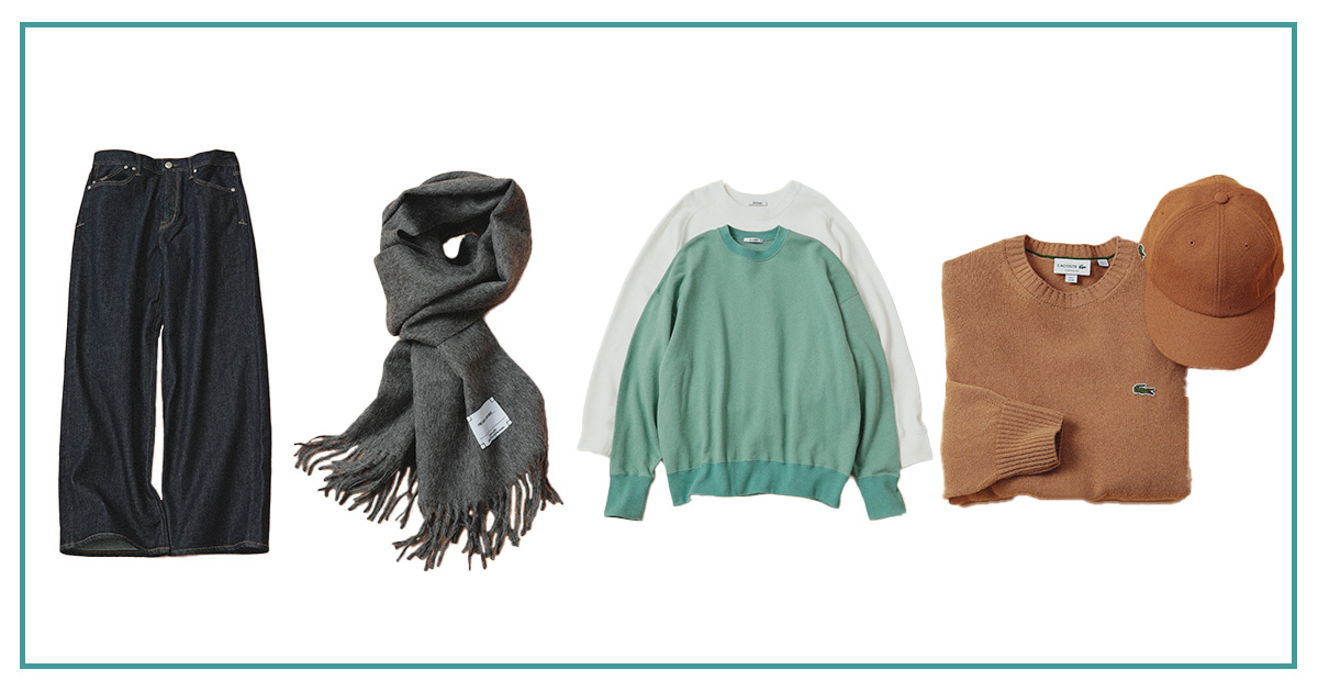 重ね着前提だからこそ、レザーやツイードなど華やかな質感を。