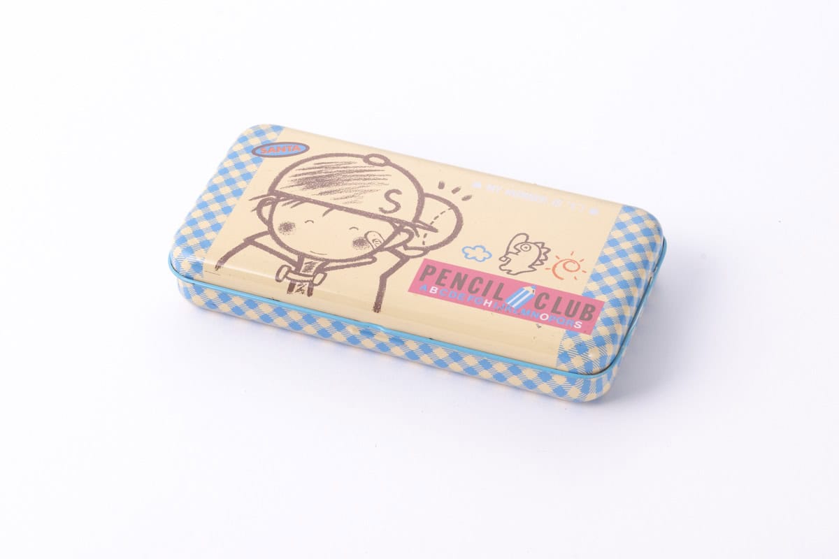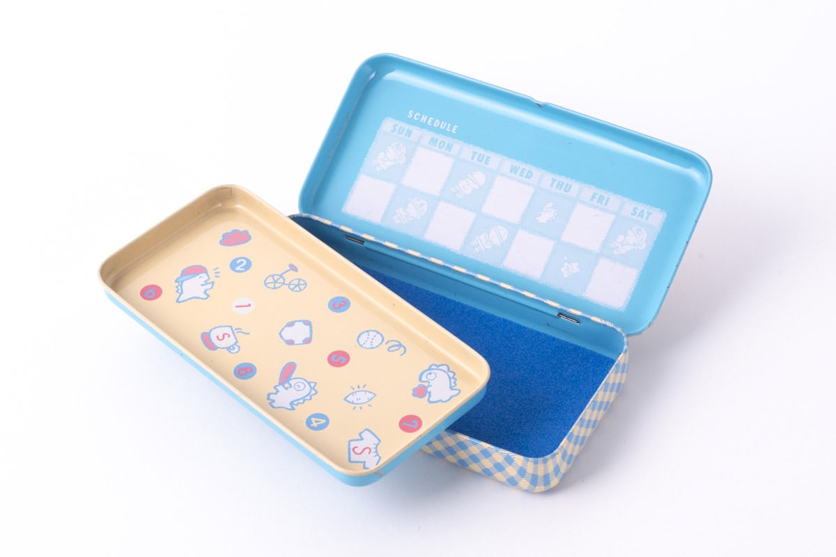 ゆかしなもん先生:こちらは当時主流だった2段タイプのカンペンケースですね。ブルーのマット付きでイラストが内側やトレイにもデザインされています。日本製の凝った作りです。