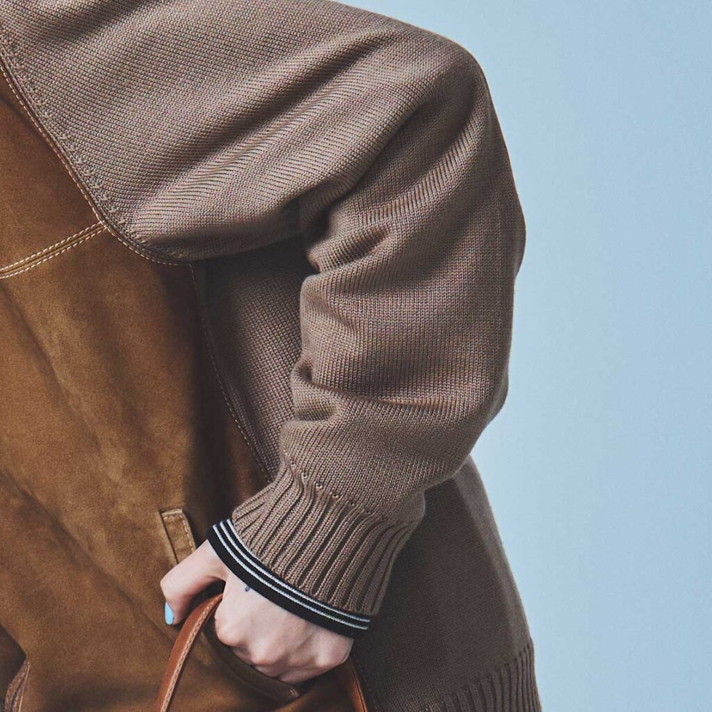 まだ暑い時季から大人気で、既に素材違いの同型は売り切れ間近。スタイリストやライターも“欲しい!”“買った!”と編集部内でも話題に。ブーツ¥374,000カーディガン¥693,000中に着たジップアップスエット¥627,000スカート¥308,000バッグ¥517,000靴下¥78,100※すべて予定価格(すべてミュウミュウ/ミュウミュウ クライアントサービス)