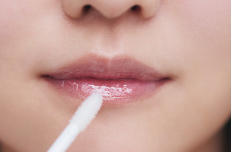 4.唇全体にdをたっぷりと重ね、ツヤのヴェールで包み込む。幻想的に輝く微細ラメ×ピンクニュアンスのホワイトで、透明感に満ちた唇に仕上げる。