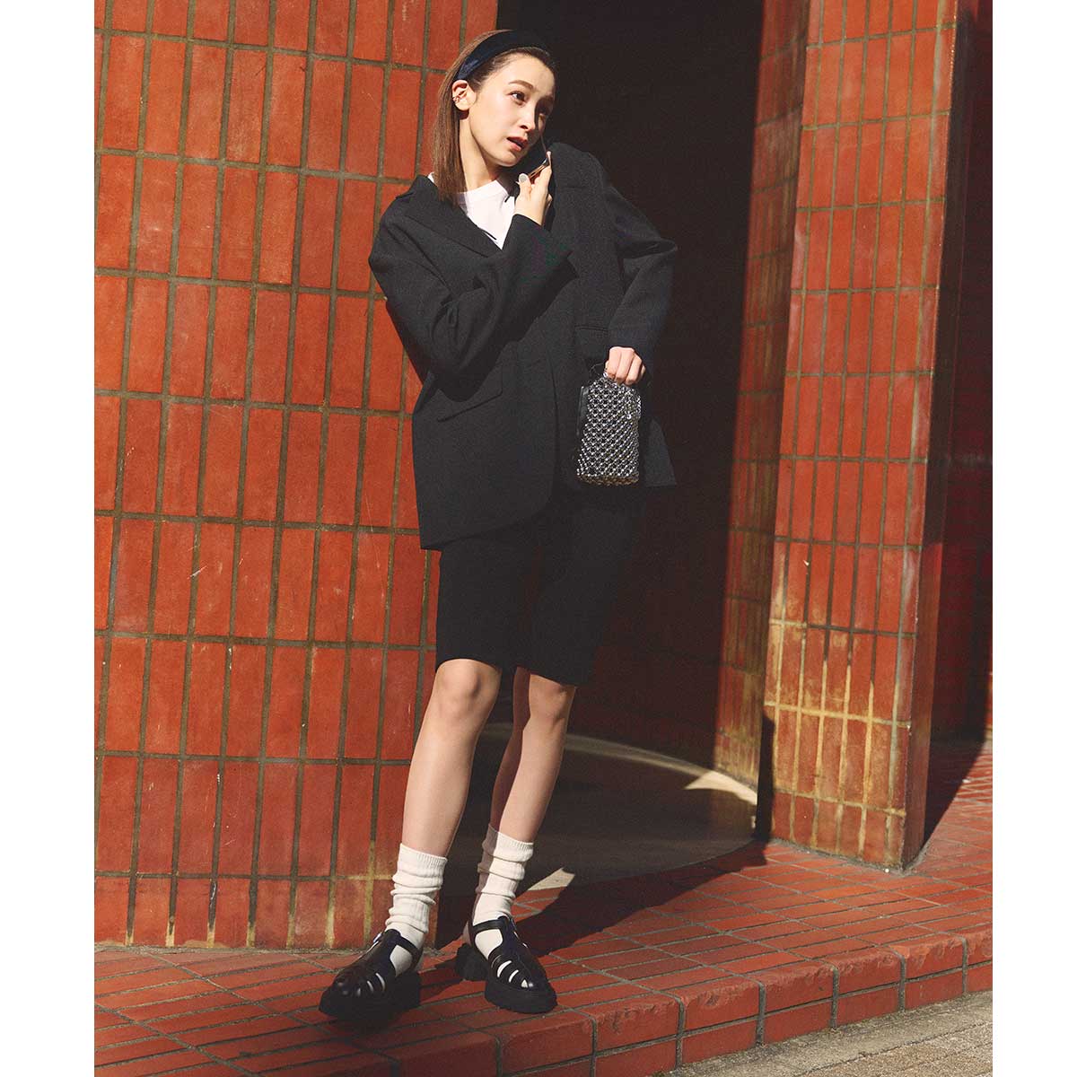 ハーフ丈は大きめジャケットでこなれ感たっぷりに
