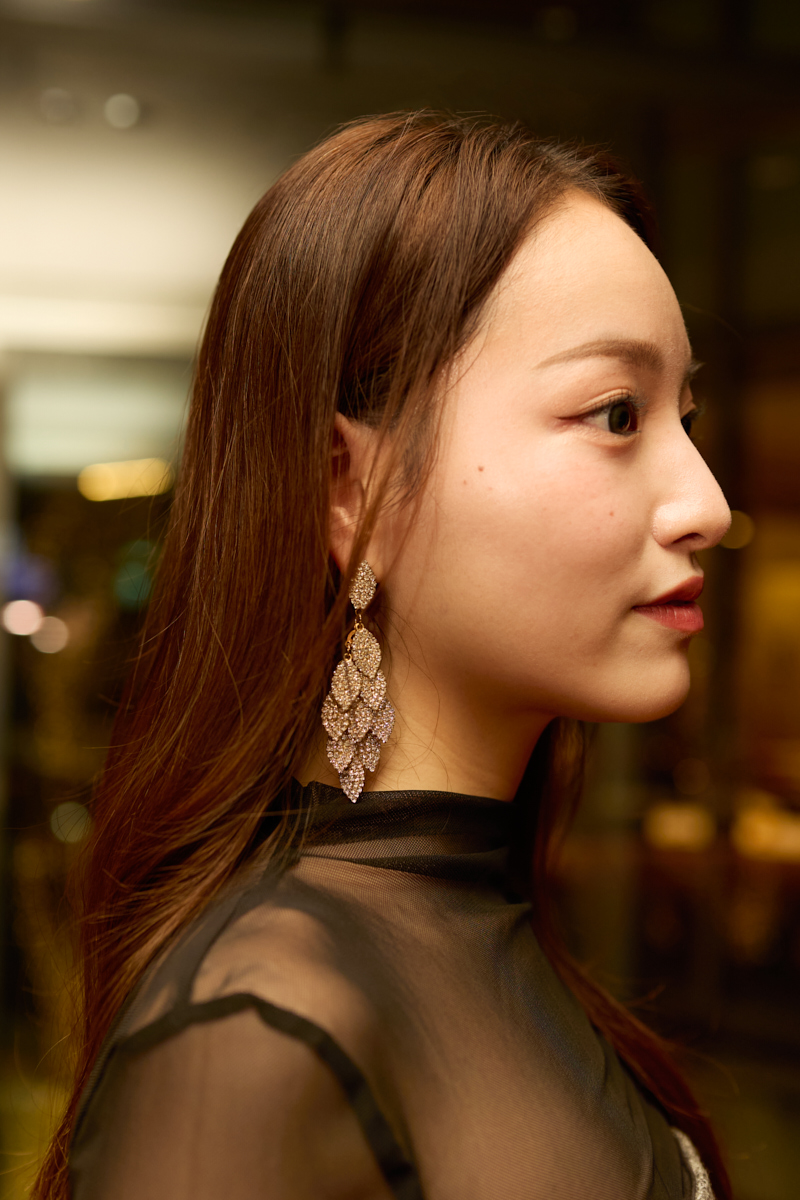 「インスタで見つけて購入したピアスは、大ぶりで存在感たっぷり。シンプルなデザインやベーシックな色の服が多いので、一つあるだけで華やかになります」