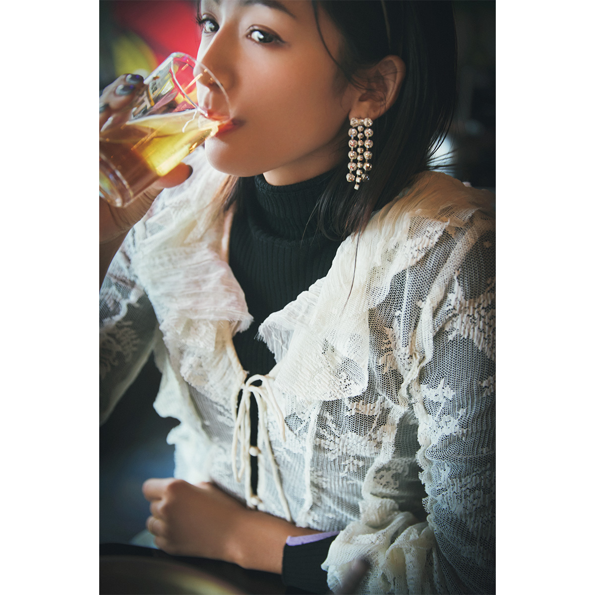 レーストップス¥24,200(プランクプロジェクト╱プランクトプロジェクト 青山店)ニット¥18,700(ランバン オン ブルー)デニムパンツ¥29,920(アストラット╱アストラット 新宿店)カチューシャ¥26,400(アレクサンドル ドゥ パリ╱アレクサンドル ドゥ パリ GINZA SIX店)ピアス¥28,600(エブール╱リトルリーグ インク)リング¥33,000リング¥19,800(ともにヴイエー ヴァンドーム青山╱ヴイエー ヴァンドーム青山 有楽町マルイ店)バッグ¥31,900(トゥティエ)