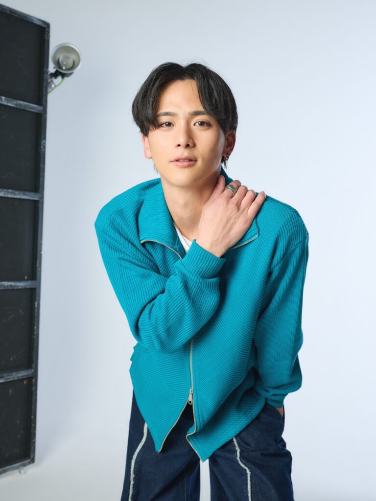 ギャビーさん:暗めと明るめのコントラストのデニムで、2人をリンクさせたコーデですね。(西岡)歩夢は黒色や革ジャンみたいなダーク系がかっこよく見えるというのはわかっていたことなので、逆に歩夢が自分では選ばなさそうなカジュアル感を出したいと思いました。