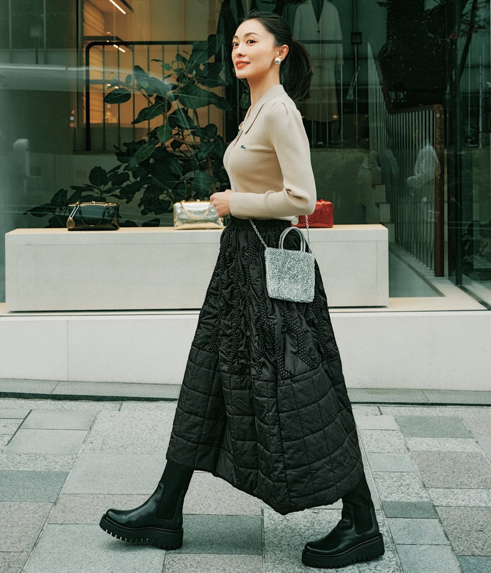 4位 冬コーデを底上げする【キルティングスカート】は2着目黒スカートにも◎