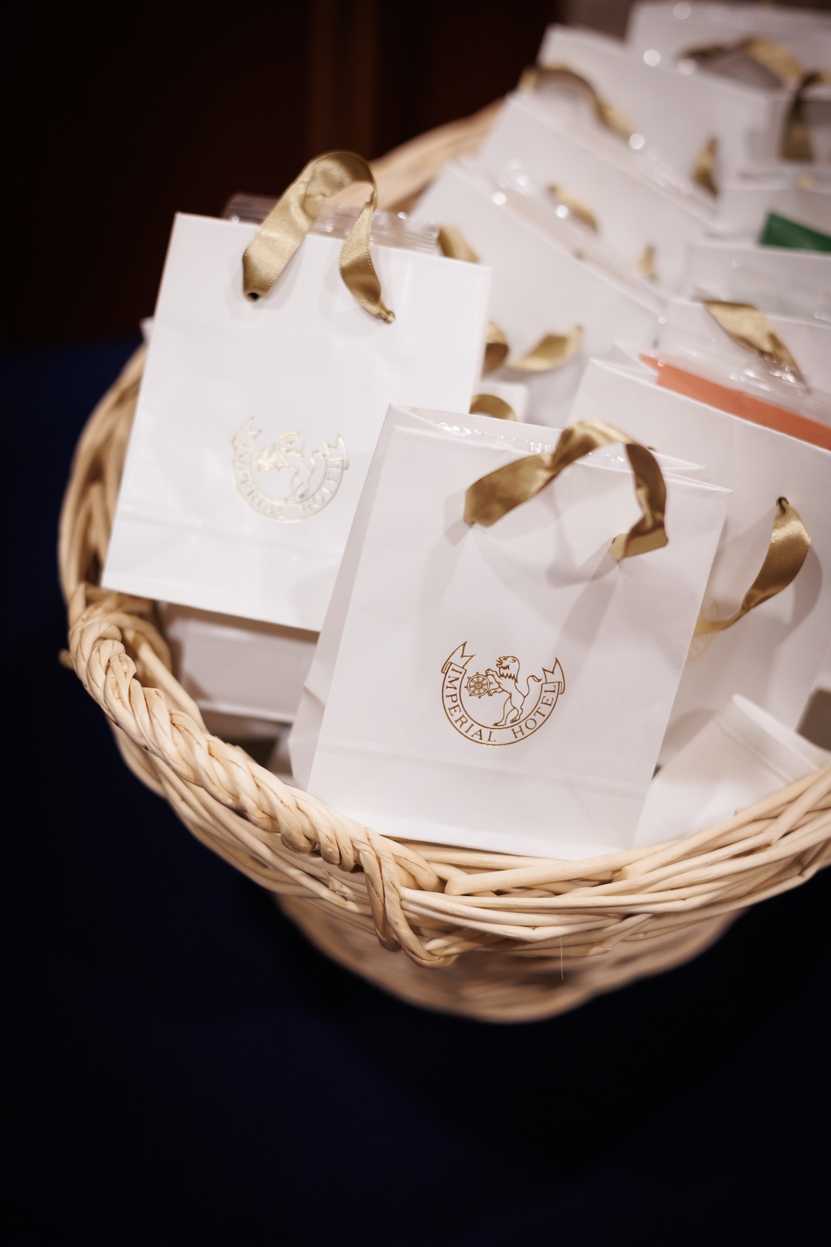 引き出物は、帝国ホテルのクッキー、ロイヤルコペンハーゲンのお皿、そしてギフトカードの3つ。