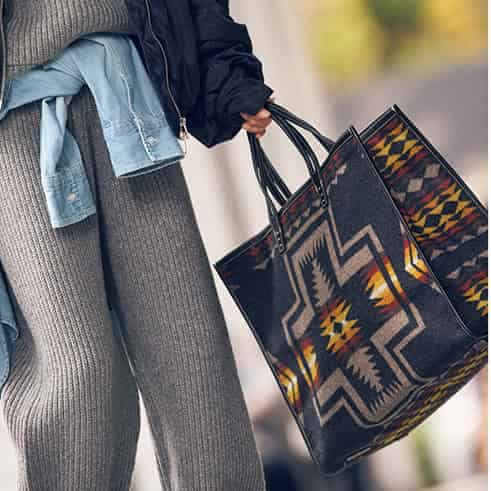 ブランドトートバッグの王道。シンプルなカジュアルコーデに品格と奥行きを出してくれる存在感も、旅行にはぴったり。