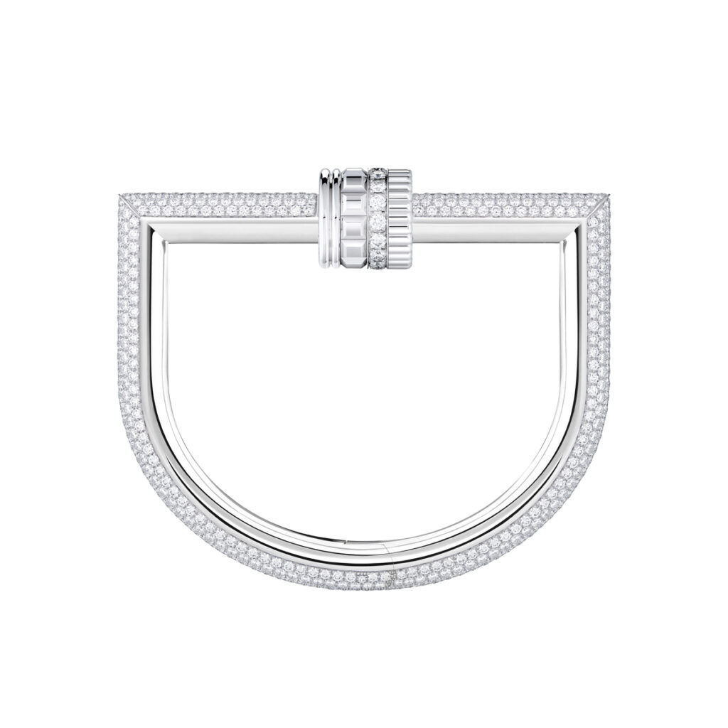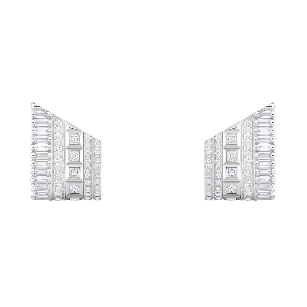 また「キャトル ラディアント」には、ダイヤモンドとホワイトゴールドが壮麗な煌めきを放つ、スタッズイヤリングやタイネックレス、バングルも登場。アートピースと呼ぶに相応しい圧倒的な輝きに見惚れる、リュクスな逸品が揃います。