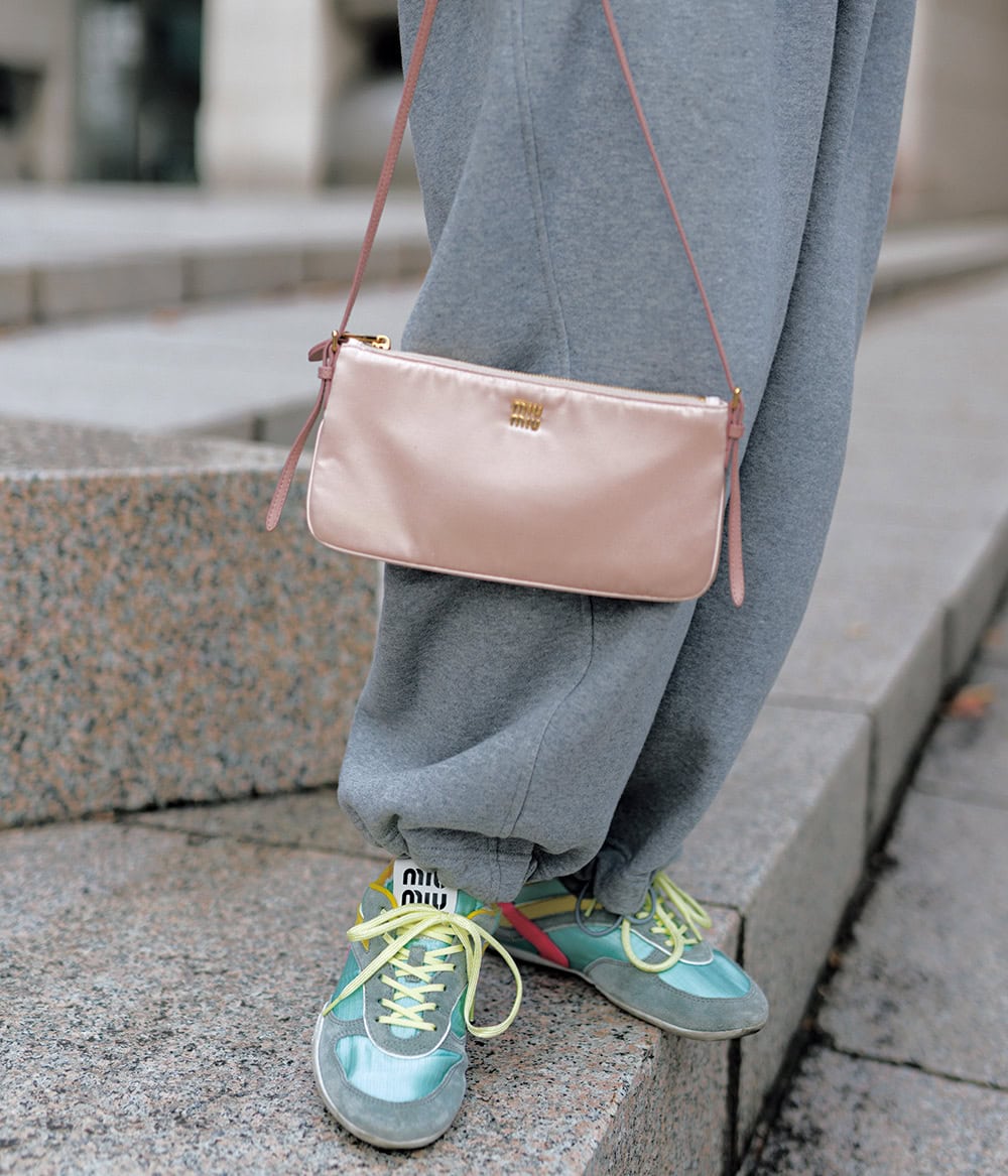 甘めとヴィンテージアイテムのミックスが気分なので、スニーカーやヘアクリップなどMIU MIUの小物に投資。気分が上がる色使いと、デイリーに使える万能さが決め手で、サングラスやデッキシューズも追加。