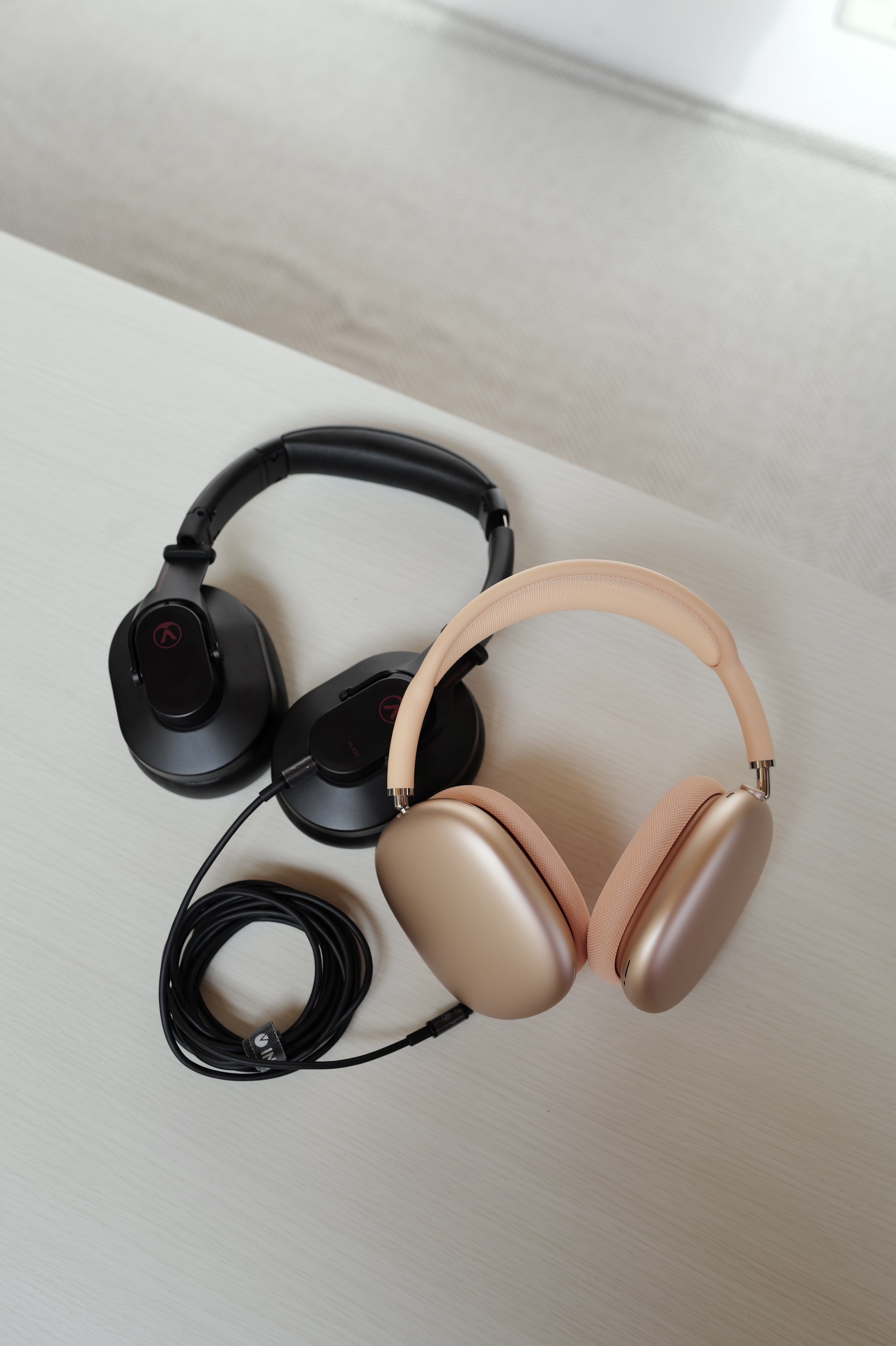 「オレンジのヘッドホンは、『AirPods Max』。鮮やかなカラーに惹かれて購入しました。サッと装着できて没入感が高く、作業中から移動の気分転換まで大活躍。存在感のあるデザインなので、ファッションの一部として楽しめるのもポイントです。私は外出時と自宅でヘッドホンを使い分けていて、自宅用には有線タイプの『Austrian Audio』の密閉型ヘッドホン、Hi-X20を愛用しています。プロ向けにヘッドホンやマイクを作っている音響機器メーカーで、音質に拘りたい人へおすすめ。落ち着いて音楽を聴きたい時や、映画&アニメ鑑賞にも最適です」