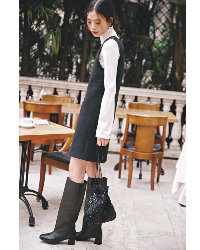 2月11日(水)、上品さが漂うジャンパースカートには、清潔感のある白タートルを合わせれば、幼くならずきれいめバランスに。ミニ丈もロングブーツと組み合わせれば露出感を抑えつつ、女性らしさをキープできます。足元にほどよい重さが出ることで、全体の印象も安定。モノトーンコーデに、きらっと光るスパンコールバッグを一点投入すれば、シンプルな装いでも、華やぎと特別感がぐっと増すスタイリングに。