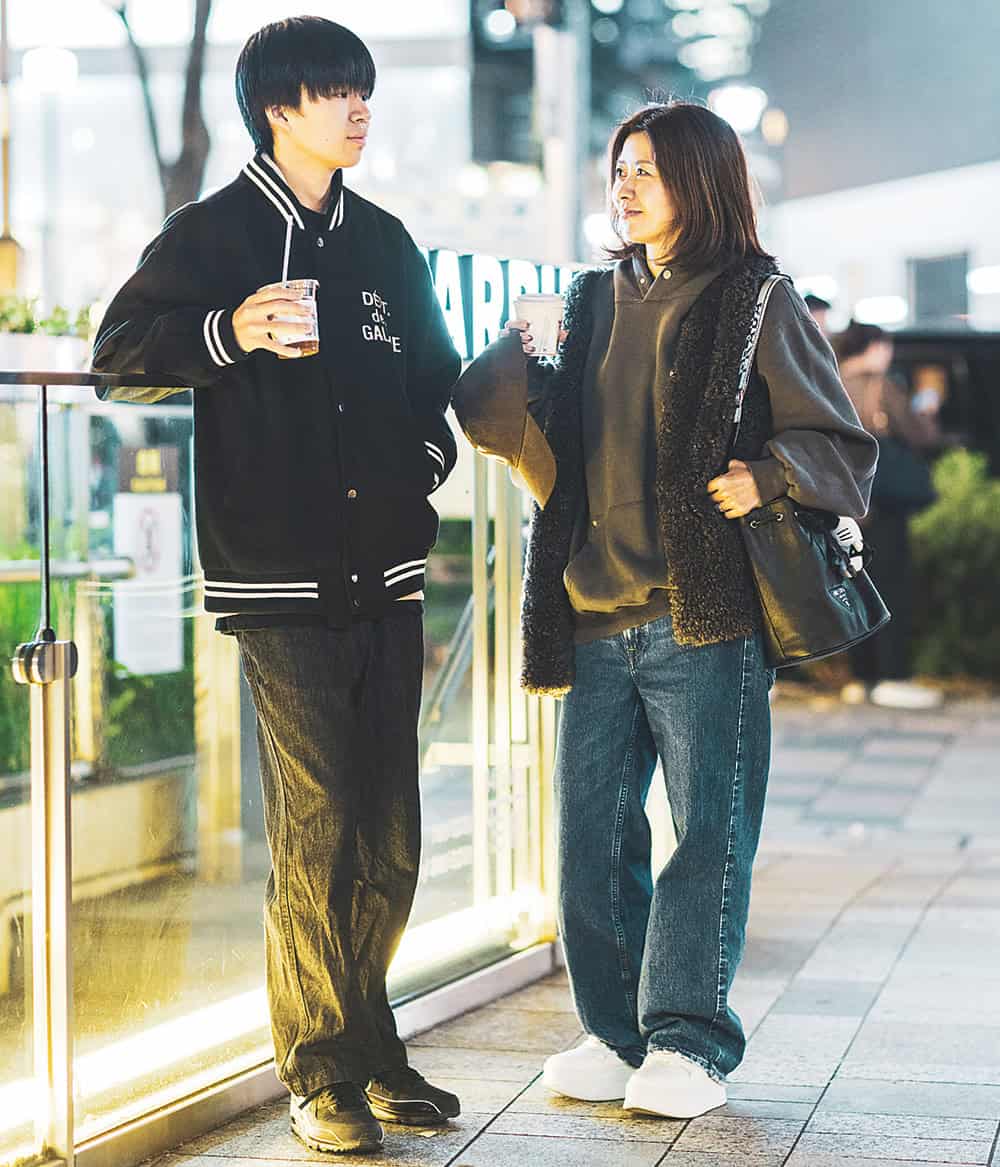 高2と中2男子のママ。大の韓国好きで息子さん達の服はECや渡韓時にママが購入。中澤さんのパーカがACMÉ DE LA VIEのもので親子シェアも。息子さんのフーディにアダム エ ロペのジレをON。セリーヌのスニーカーとプラダのバッグでカジュアルを程よく大人ラグジュアリーに昇華。